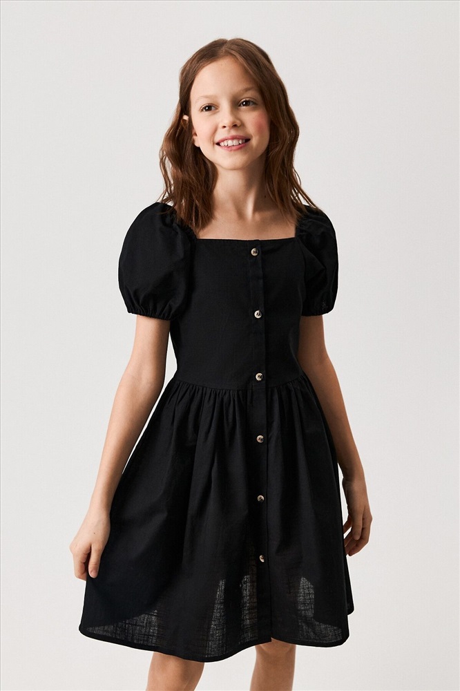 ID товара: 1094669 Состав: 100% Хлопок Сезон: Весна/Лето Длина: До колена Фасон: Расклешенное Рукав: короткие Вид застежки: Пуговицы Вырез горловины: Каре Основная ткань: Хлопок Стиль: повседневный Страна бренда: Россия Страна производства: Китай Платье детское для девочек Russia2 черный Комментарии к товару