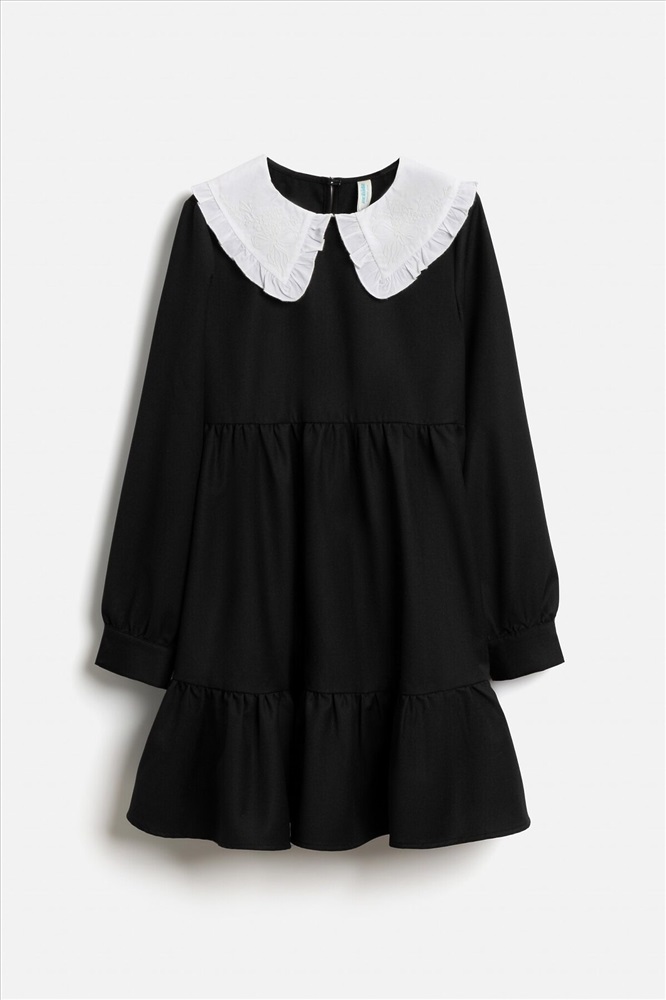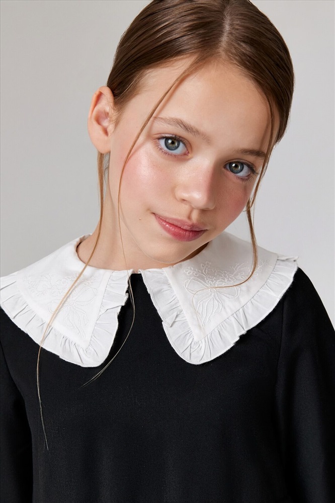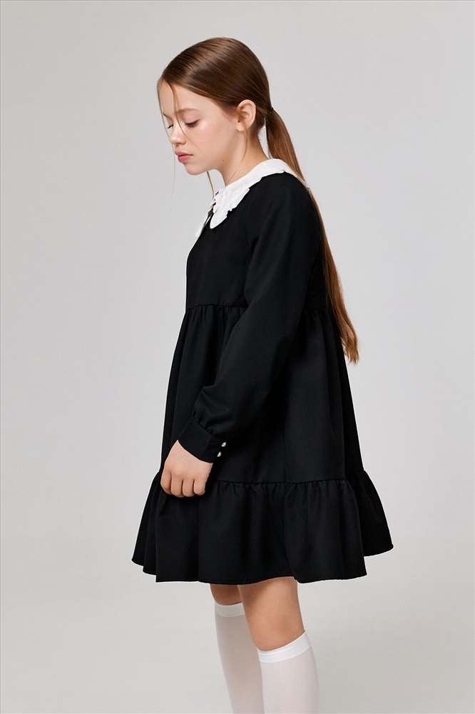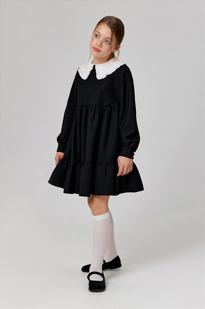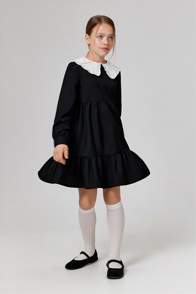 ID товара: 1126928 Состав: 63% Полиэстер, 35% Вискоза, 2% Полиуретан Сезон: Демисезон Длина: До колена Фасон: Свободный Рукав: Длинные Вырез горловины: Отложной воротничок Основная ткань: Полиэстер Стиль: классический Страна бренда: Россия Страна производства: Китай Платье детское для девочек Veter черный Комментарии к товару