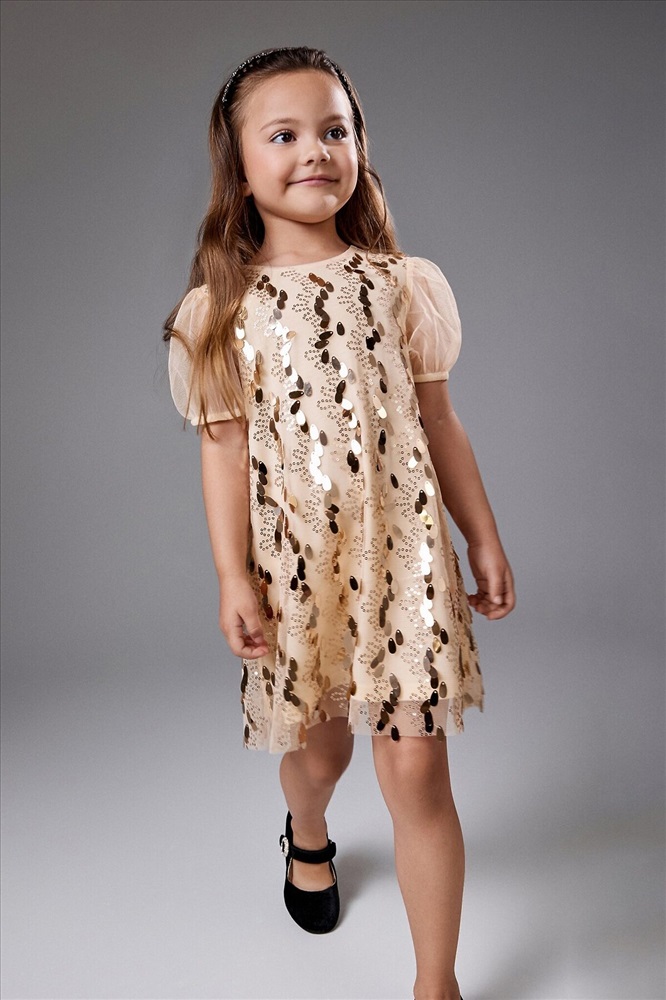 ID товара: 1219440 Состав: 100% Полиэстер Сезон: Осень/Зима Длина: До колена Фасон: Трапеция Рукав: короткие Вырез горловины: Округлый Основная ткань: Полиэстер Стиль: Нарядный Страна бренда: Россия Страна производства: Китай Платье детское для девочек Evkliya бежевый Комментарии к товару