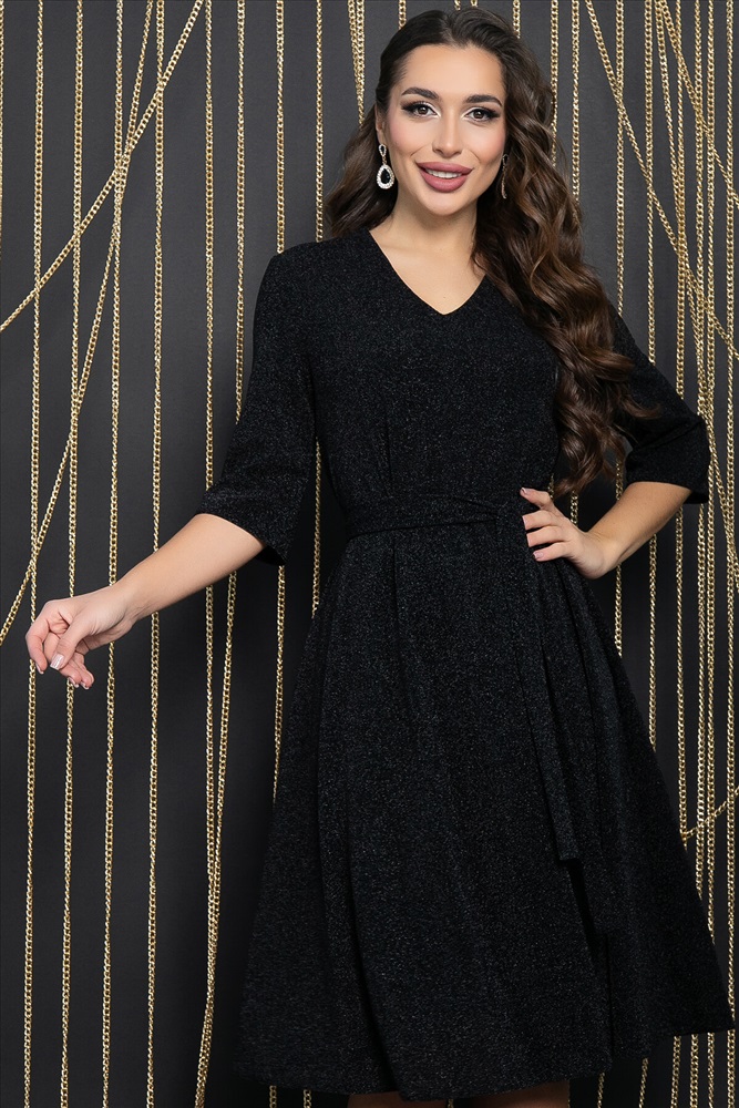 Стильное платье - отличное решение для женщин на разные поводы. Оно идеально для вечерних выходов и праздничных мероприятий. Уникальное сочетание блестящего люрекса, V-образного выреза горловины и свободных рукавов привлекает внимание и подчеркивает женственность. Легкий и нарядный образ подчеркивается поясом из основной ткани, который формирует идеальный силуэт. Пояс идет в комплекте.