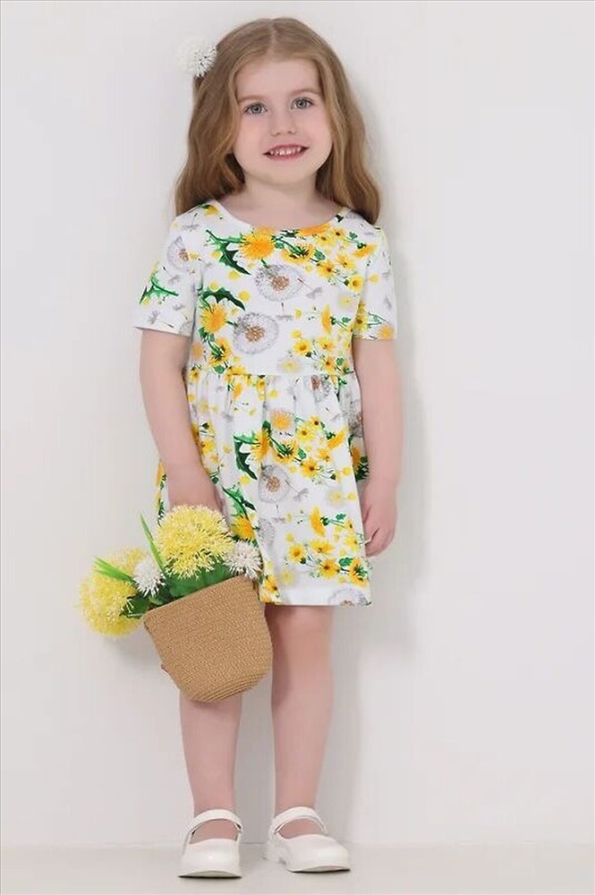 ID товара: 1000076 Акции: -16%, до 01.12.2025 Состав: Хлопок 92%, Лайкра 8% Сезон: Весна/Лето Длина: Средняя Фасон: Полуприлегающий Рукав: Короткий Вырез горловины: Круглый Рисунок: растительный, цветочный Основная ткань: Хлопок Стиль: Повседневный Страна бренда: Россия Страна производства: Россия Платье для девочки выполнено из кулира - легкого хлопкового полотна с лайкрой. Изделие с короткими рукавами, юбочка присборена по линии талии. Отличный выбор для теплого летнего дня! Уход: только машинная стирка (руками не стирать!) при температуре 40 градусов, без предварительного замачивания. Тип полотна - кулир с лайкрой Комментарии к товару
