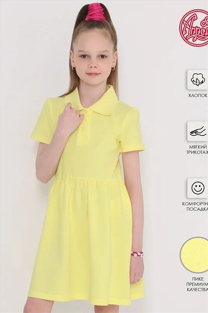 Платье-поло для девочки выполнено из хлопкового полотна. Изделие с короткими рукавами, с застежкой на кнопочки и присборенной по талии юбочкой. Отличный вариант для летних прогулок! Уход: только машинная стирка (руками не стирать!) при температуре 40 градусов, без предварительного замачивания. Тип полотна - пике