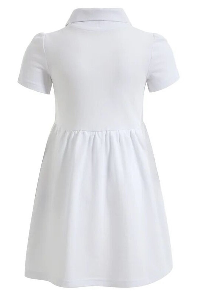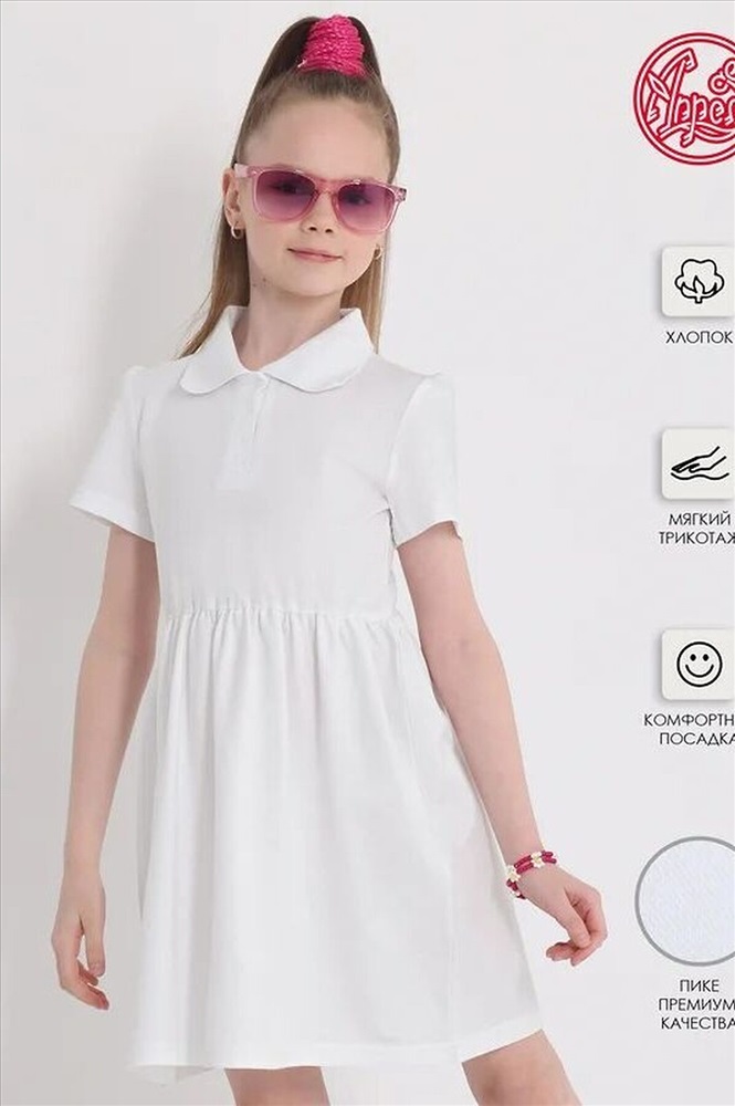 Платье-поло для девочки выполнено из хлопкового полотна. Изделие с короткими рукавами, с застежкой на кнопочки и присборенной по талии юбочкой. Отличный вариант для летних прогулок! Уход: только машинная стирка (руками не стирать!) при температуре 40 градусов, без предварительного замачивания. Тип полотна - пике