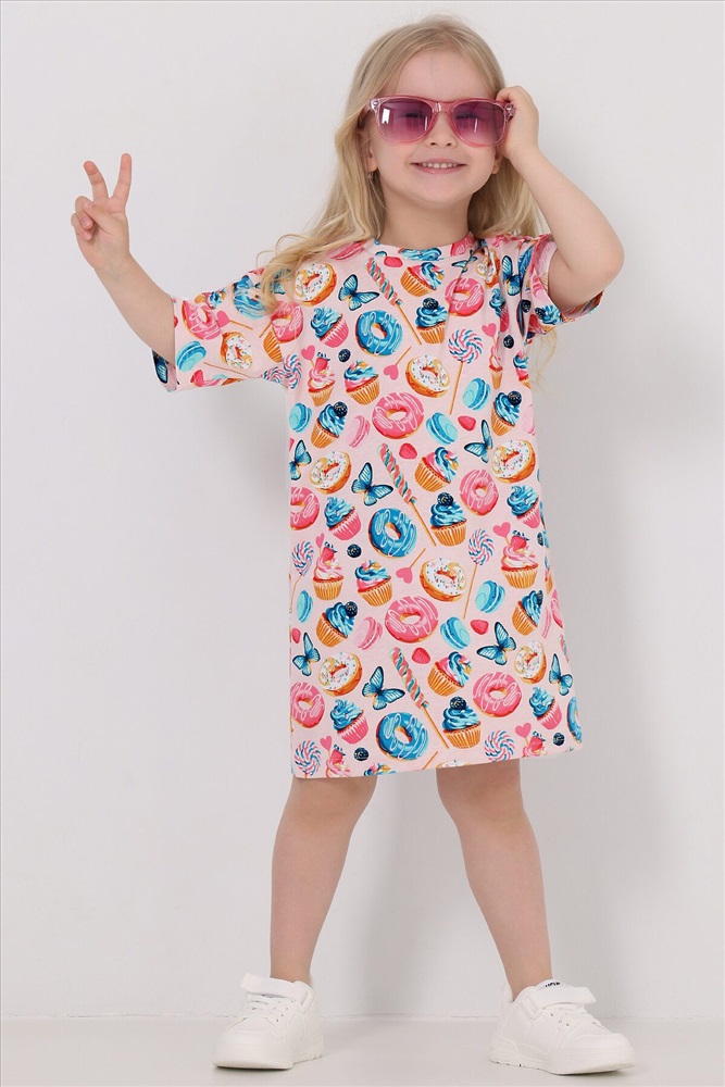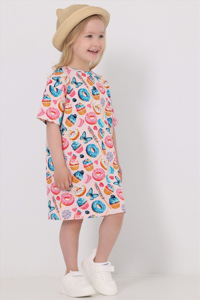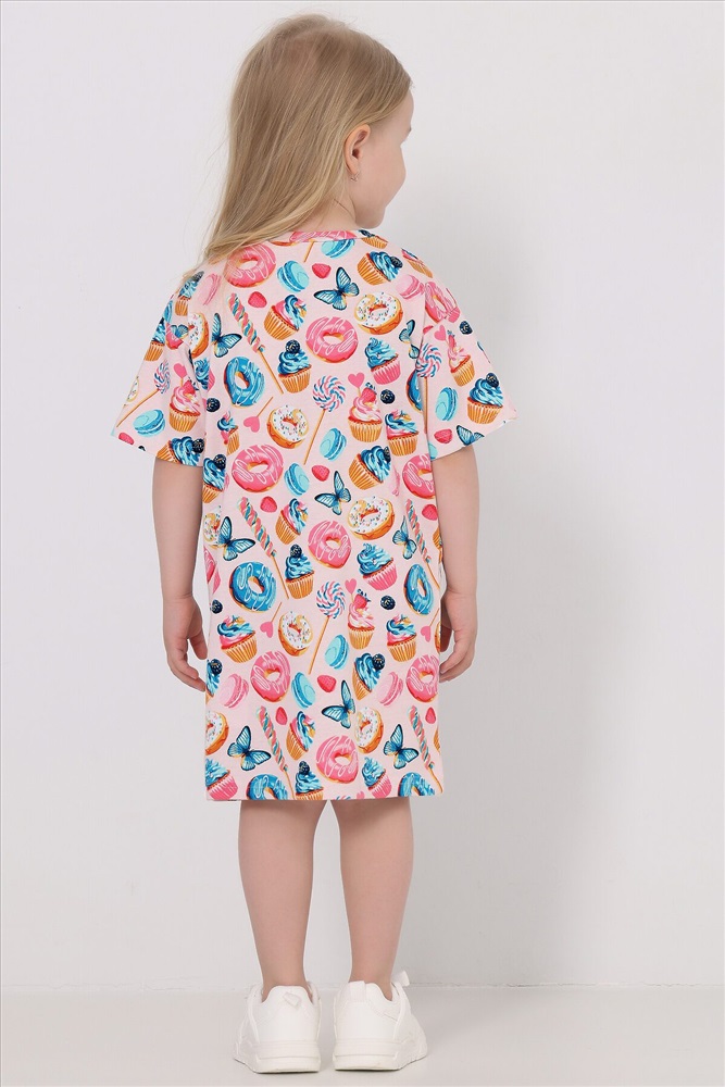 Платье Oversize из кулира - легкого хлопкового полотна. Изделие с короткими рукавами со спущенным плечом, украшено стильной набивкой. Отличный выбор для летнего жаркого дня! Уход: только машинная стирка (руками не стирать!) при температуре 40 градусов, без предварительного замачивания. Тип полотна - кулир