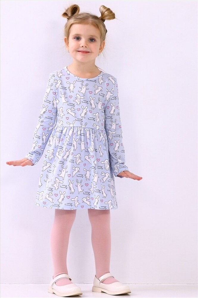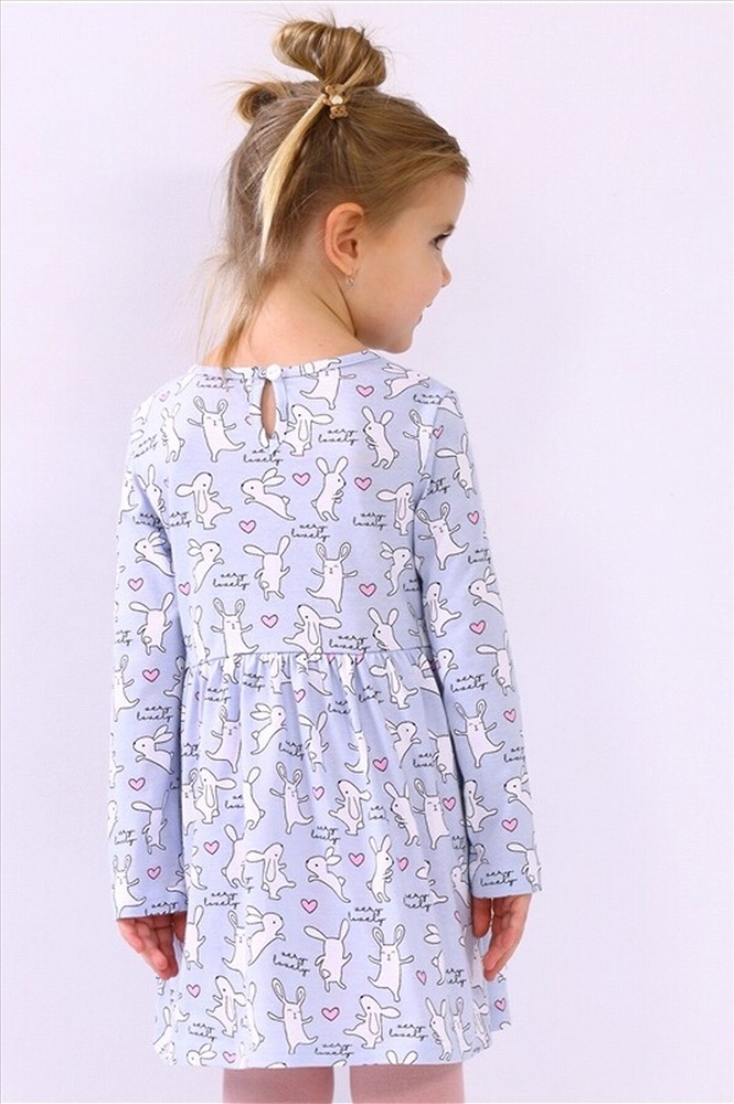 Платье для девочки выполнено из кулира – лёгкого хлопкового полотна. Изделие с длинными рукавами и с присборенной по талии юбочкой, застежка на пуговицу по спинке. Отличный наряд для маленьких принцесс! Уход: только машинная стирка (руками не стирать!) при температуре 40 градусов, без предварительного замачивания. Тип полотна - кулир