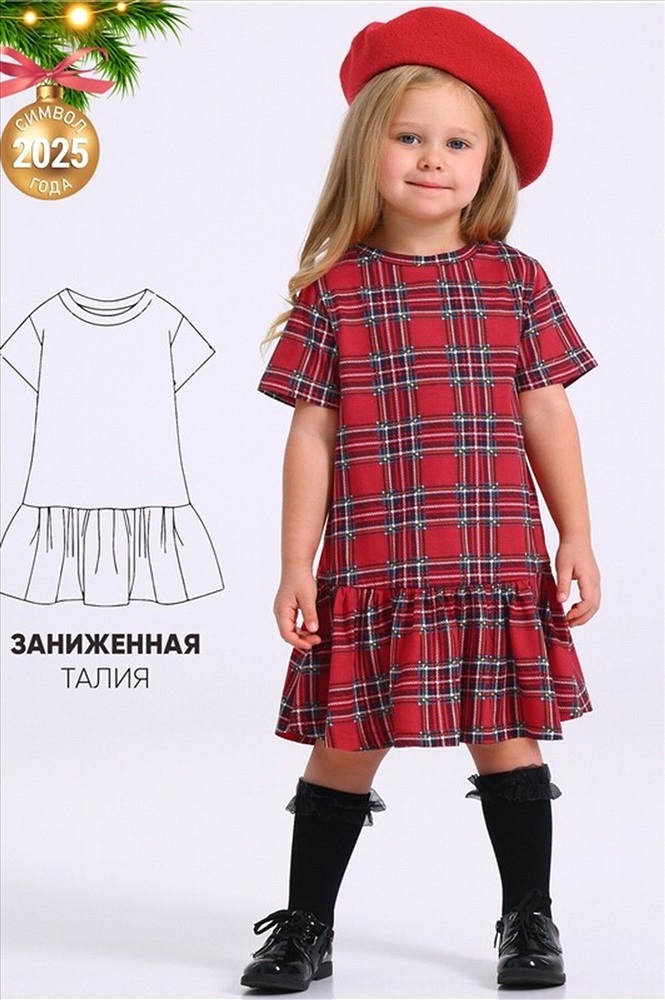 Платье для девочки выполнено из кулира - легкого хлопкового полотна. Изделие трапециевидного силуэта, заниженная линия талии с присборенной юбочкой, короткие рукава со спущенной линией плеча. Уход: только машинная стирка (руками не стирать!) при температуре 40 градусов, без предварительного замачивания.