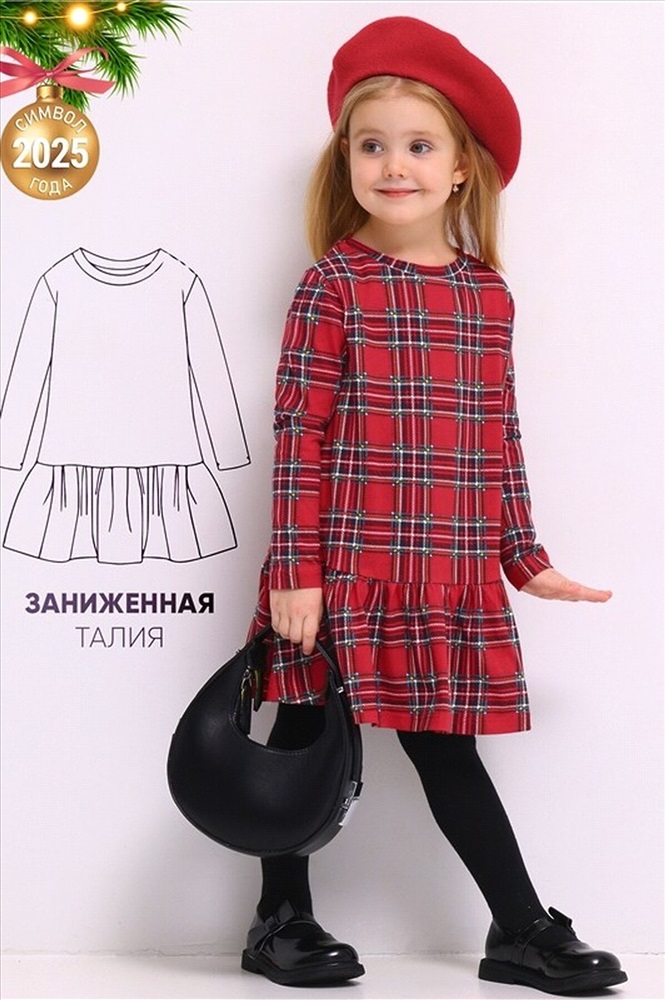Платье для девочки выполнено из кулира - лёгкого хлопкового полотна. Изделие трапециевидного силуэта, с заниженной линией талии, с присборенной юбочкой, длинные рукава со спущенной линией плеча. Уход: только машинная стирка (руками не стирать!) при температуре 40 градусов, без предварительного замачивания.