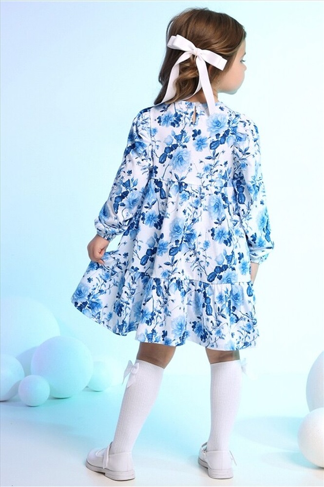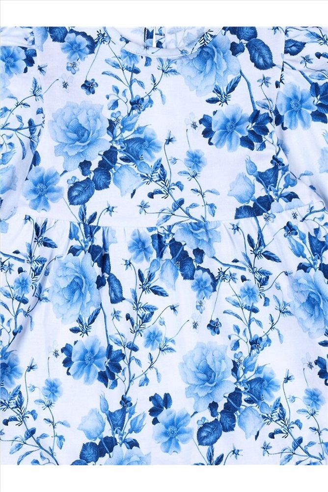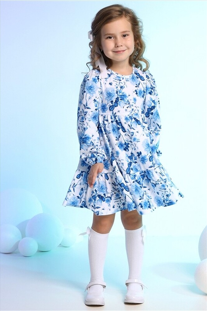 Платье для девочки выполнено из кулира – лёгкого хлопкового полотна. Изделие трапециевидного силуэта, отрезное по талии, длинные рукава-фонарики собраны по низу на эластичную тесьму, застежка по спинке на пуговицу, юбка украшена широким воланом. Уход: только машинная стирка (руками не стирать!) при температуре 40 градусов, без предварительного замачивания.