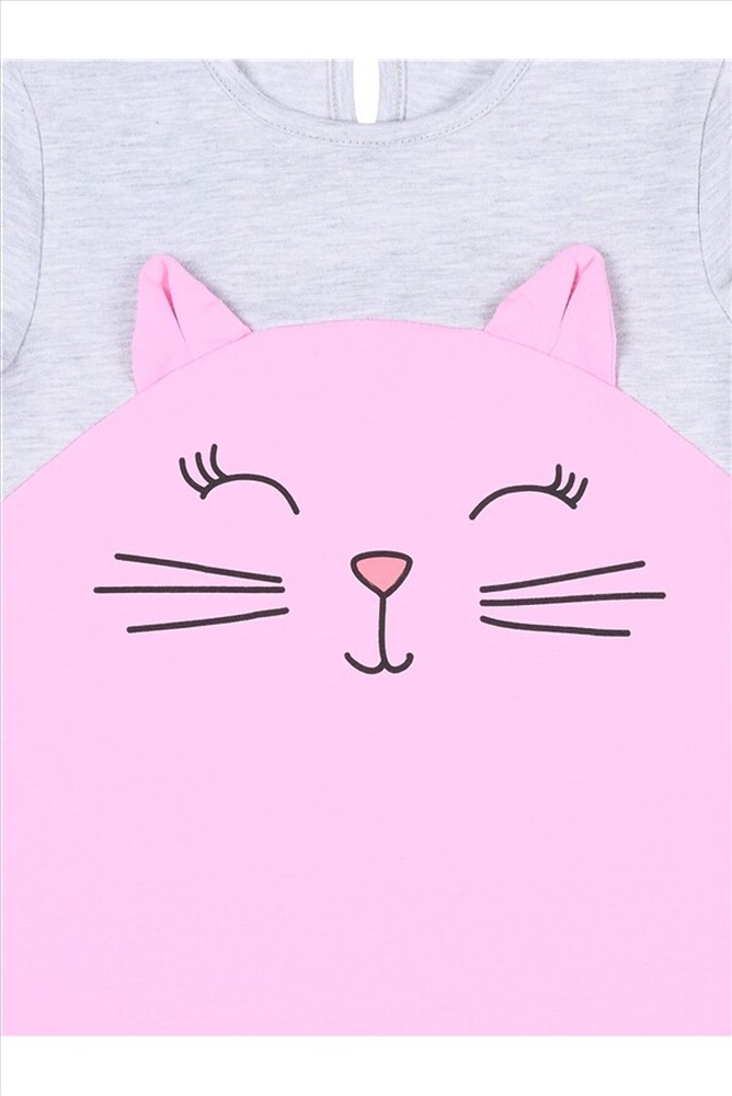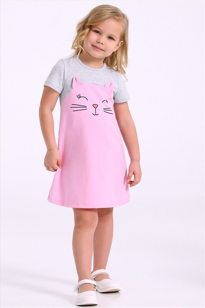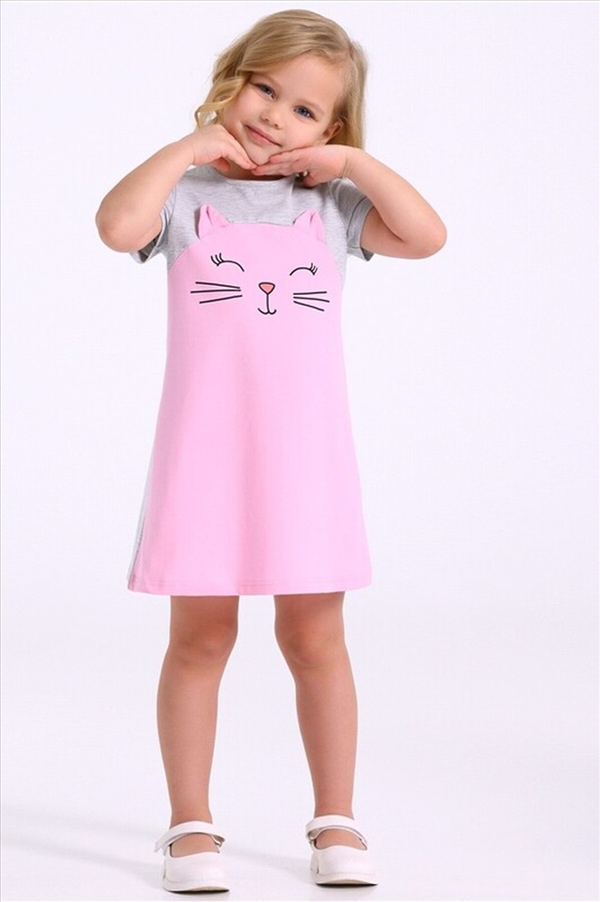 Платье для девочки выполнено из кулира - тонкого хлопкового полотна с лайкрой. Изделие с короткими рукавами, на кокетке. Веселый принт и нашивные элементы имитируют мордочку зверушки. Уход: только машинная стирка (руками не стирать!) при температуре 40 градусов, без предварительного замачивания. Изделия с печатью и декором перед стиркой необходимо вывернуть на изнаночную сторону.