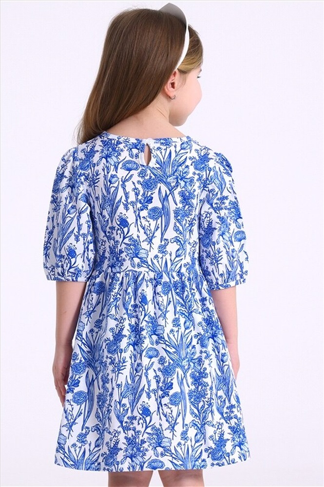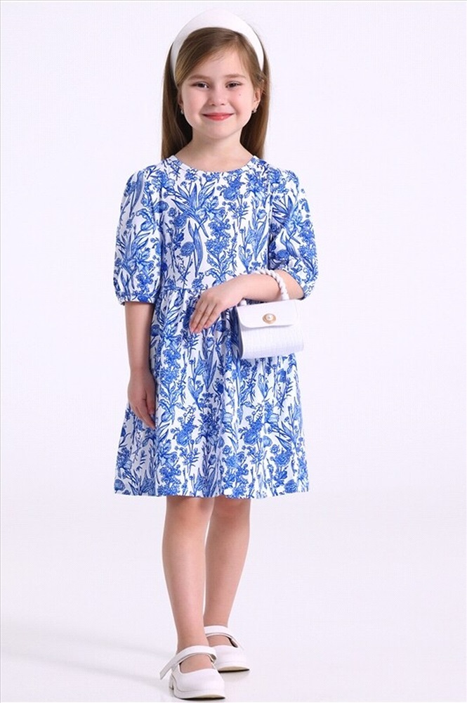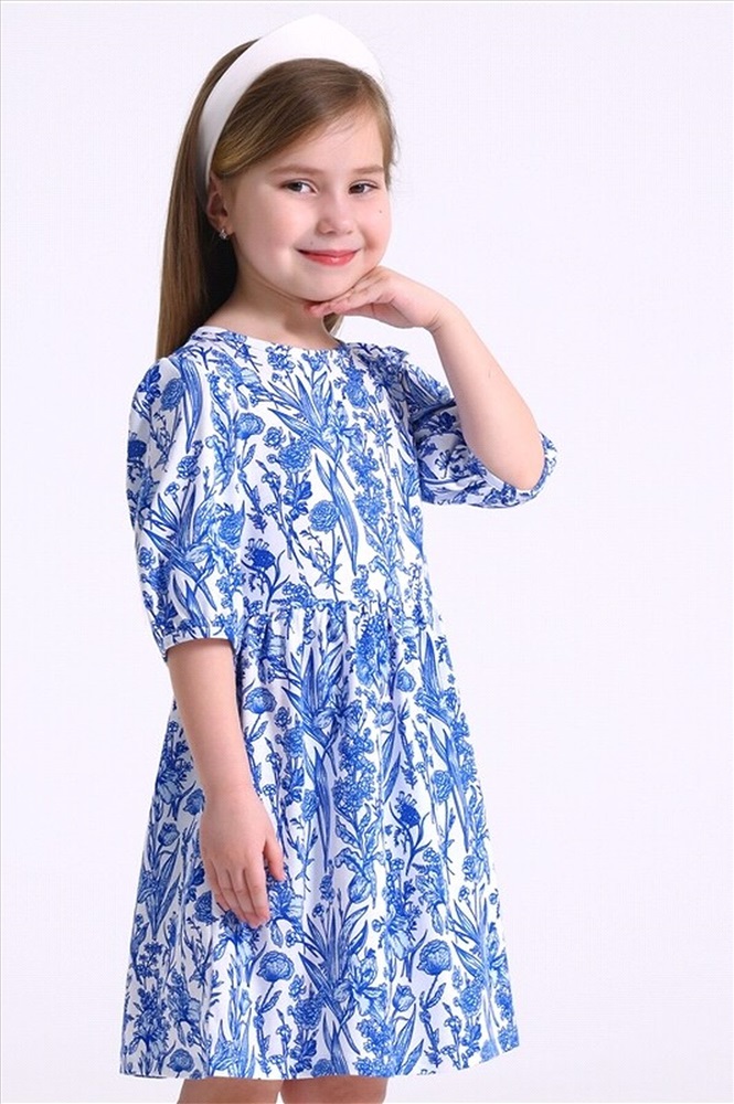 Платье для девочки выполнено из кулира - легкого хлопкового полотна. Изделие с рукавами-фонариками, собранными по низу на эластичную тесьму, юбочка присборена по линии талии, застежка на пуговицу по спинке. Уход: только машинная стирка (руками не стирать!) при температуре 40 градусов, без предварительного замачивания.