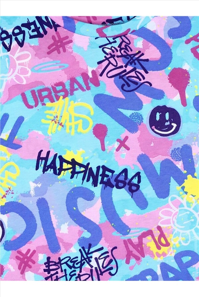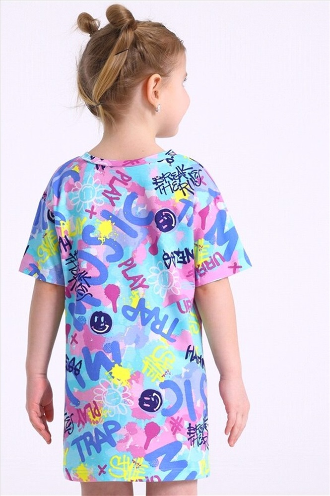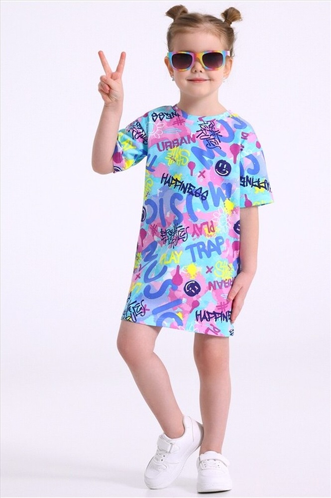Платье Oversize из кулира - легкого хлопкового полотна. Изделие с короткими рукавами со спущенным плечом, украшено стильной набивкой. Отличный выбор для летнего жаркого дня! Уход: только машинная стирка (руками не стирать!) при температуре 40 градусов, без предварительного замачивания.