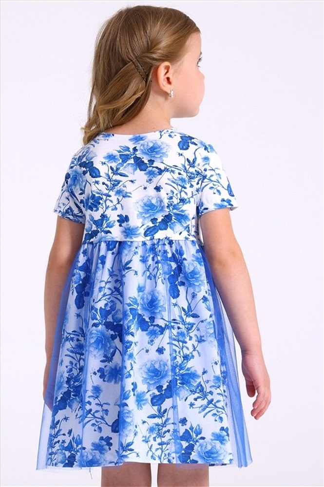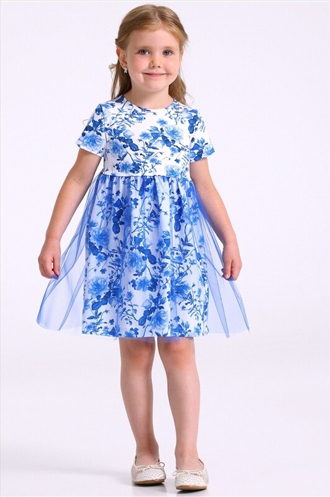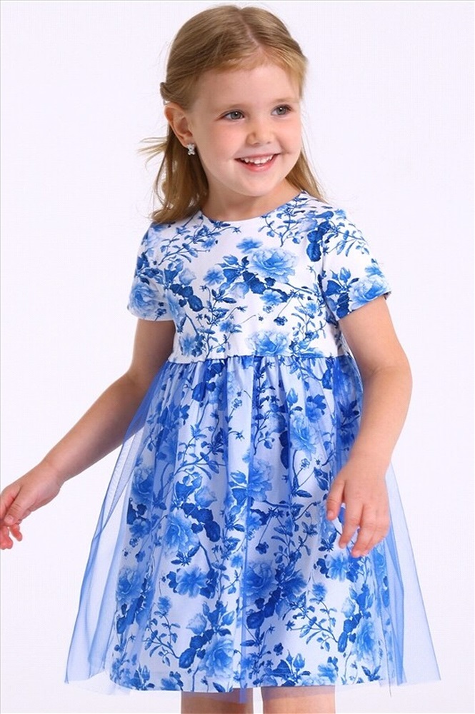 Праздничное платье для девочки выполнено из мягкого хлопкового полотна с лайкрой. Изделие полуприлегающего силуэта, с круглым вырезом горловины и короткими рукавами. Юбка полусолнце продублирована мягкой сеточкой. Уход: только деликатная стирка при температуре 40 градусов, без предварительного замачивания.