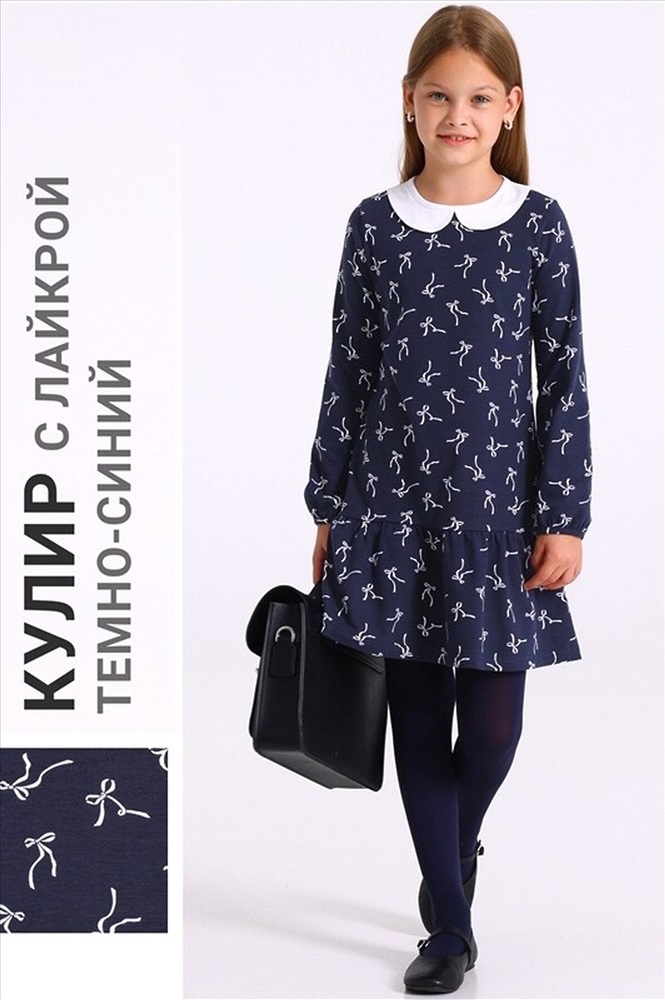 ID товара: 1197828 Состав: Хлопок 92% + Лайкра 8% Сезон: Демисезон Длина: Средняя Фасон: Трапеция Рукав: Длинные Вид застежки: Пуговица Вырез горловины: Отложной воротник Рисунок: Бант Декоративные элементы: Принт Основная ткань: Хлопок Стиль: Романтический Страна бренда: Россия Страна производства: Россия Платье для девочки выполнено из кулира - легкого хлопкового полотна с лайкрой. Изделие с длинными рукавами, отложным воротником, сзади застегивается на пуговку, декорировано оборкой по низу. Отличный вариант для школьницы на каждый день! Уход: только машинная стирка (руками не стирать!) при температуре 40 градусов, без предварительного замачивания.тами по низу. Уход: только машинная стирка (руками не стирать!) при температуре 40 градусов, без предварительного замачивания. Комментарии к товару