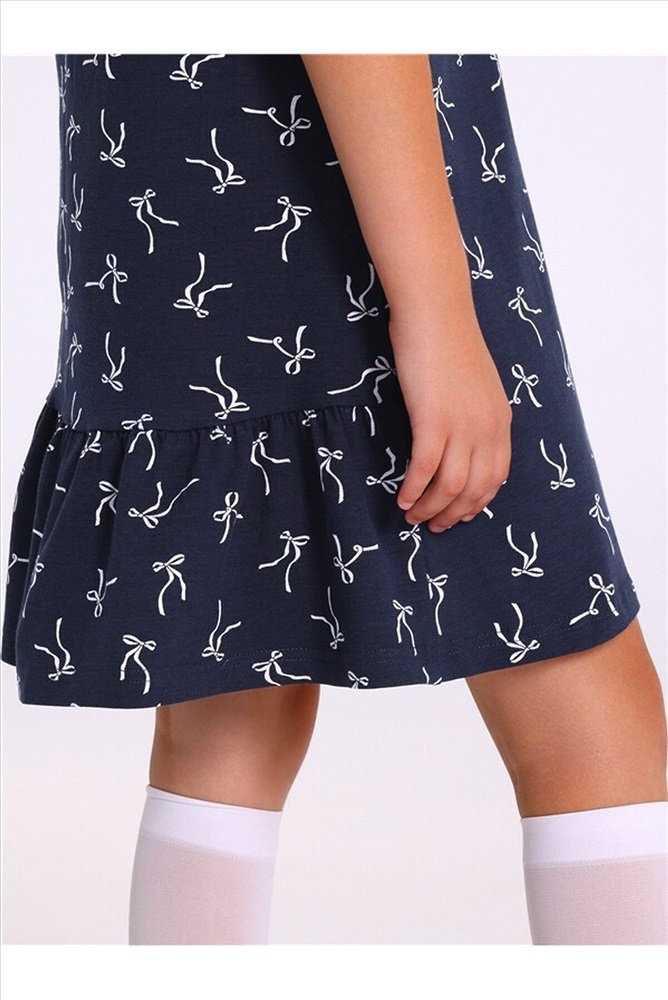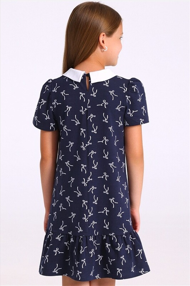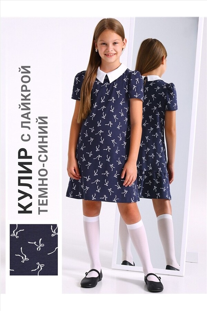 ID товара: 1197953 Состав: Хлопок 92% + Лайкра 8% Сезон: Демисезон Длина: Средняя Фасон: Трапеция Рукав: короткие Вид застежки: Пуговица Вырез горловины: Отложной воротник Рисунок: Бант Декоративные элементы: Принт Основная ткань: Хлопок Стиль: классический Страна бренда: Россия Страна производства: Россия Платье для девочки из кулира - тонкого хлопкового полотна с лайкрой. Изделие трапециевидного силуэта, с коротким рукавом со сборкой по окату и отложным воротником. По спинке застежка на пуговицу, по низу оборка. Комментарии к товару