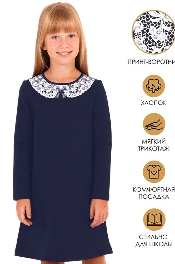 ID товара: 772086 Акции: -16%, до 01.12.2025 Состав: Хлопок 95%, Лайкра 5% Сезон: Весна/Лето Длина: Средняя Фасон: Свободный крой Рукав: Длинный Вид застежки: Пуговица Вырез горловины: Круглый Рисунок: Узор Основная ткань: Хлопок Стиль: Повседневный Страна бренда: Россия Страна производства: Россия Платье для девочки выполнено из футера - плотного хлопкового полотна с лайкрой. Изделие с длинными рукавами, сзади застегивается на пуговицу, украшено печатью имитирующей кружево. Отличный выбор для школьницы на каждый день! Уход: только машинная стирка (руками не стирать!) при температуре 40 градусов, без предварительного замачивания. Изделия с печатью и декором перед стиркой необходимо вывернуть на изнаночную сторону. Материал: футер Комментарии к товару