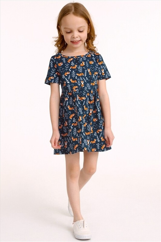Платье для девочки выполнено из легкого хлопкового полотна. Изделие с короткими рукавами, юбочка присборена по линии талии. Отличный выбор для теплого летнего дня! Уход: только машинная стирка (руками не стирать!) при температуре 40 градусов, без предварительного замачивания. Тип полотна - кулир