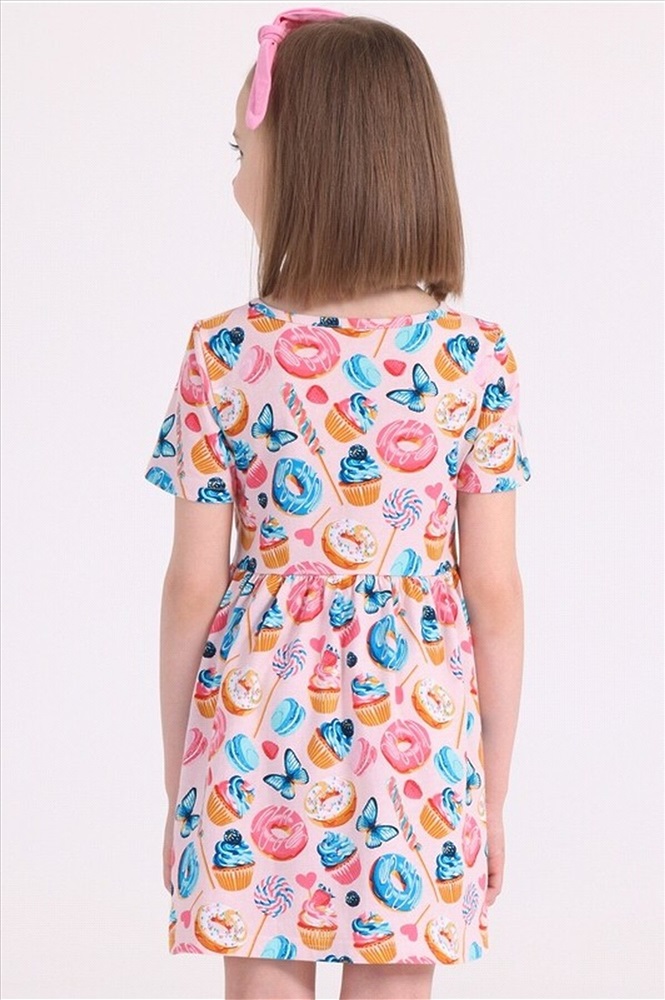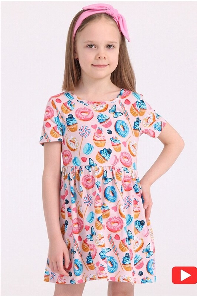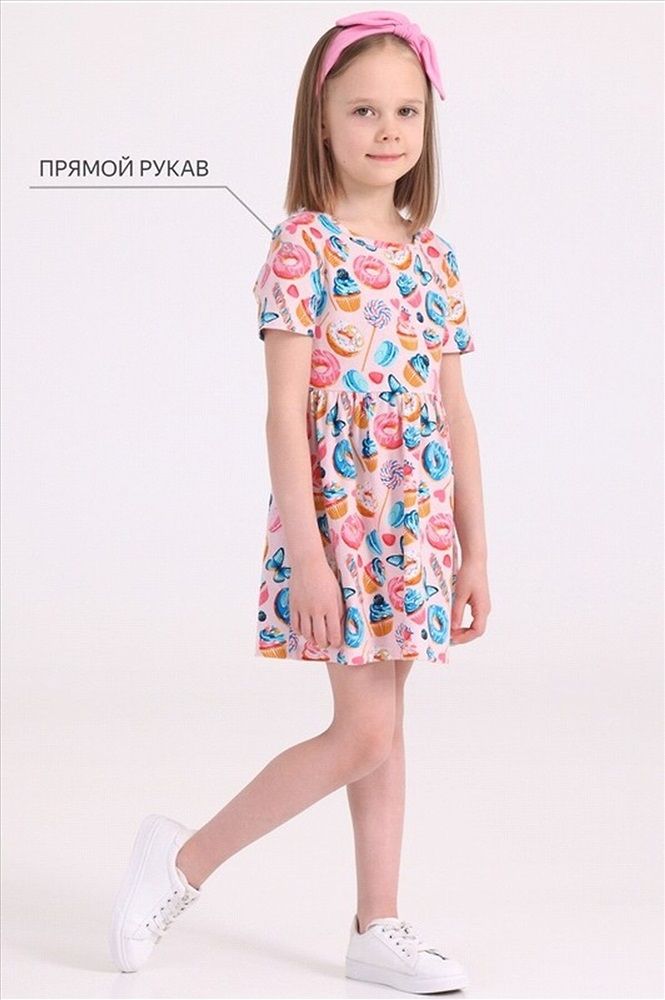 Платье для девочки выполнено из кулира - легкого хлопкового полотна. Изделие с короткими рукавами, юбочка присборена по линии талии. Отличный выбор для теплого летнего дня! Уход: только машинная стирка (руками не стирать!) при температуре 40 градусов, без предварительного замачивания. Тип полотна - кулир