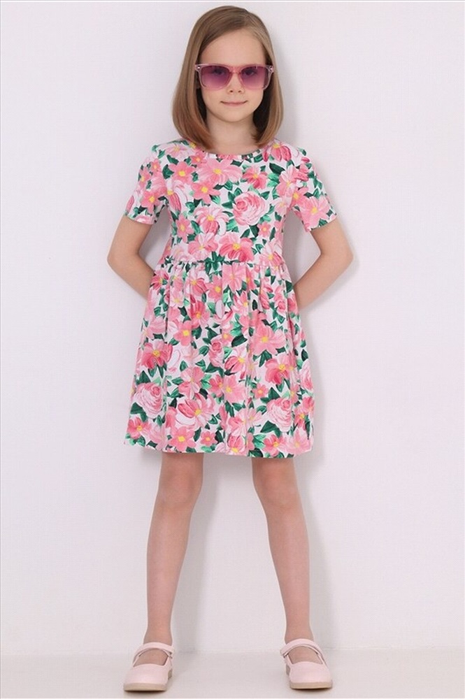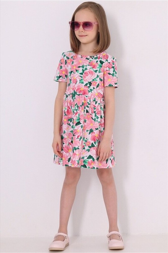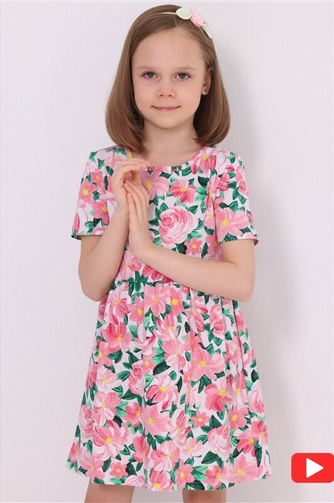 Платье для девочки выполнено из кулира - легкого хлопкового полотна. Изделие с короткими рукавами, юбочка присборена по линии талии. Отличный выбор для теплого летнего дня! Уход: только машинная стирка (руками не стирать!) при температуре 40 градусов, без предварительного замачивания. Тип полотна - кулир