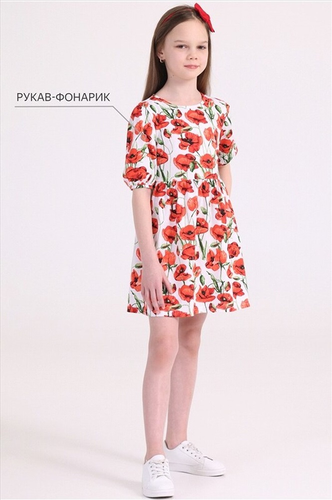ID товара: 985694 Акции: -16%, до 01.12.2025 Состав: Хлопок 100% Сезон: Весна/Лето Длина: Средняя Фасон: Полуприлегающий Рукав: До локтя Вид застежки: Пуговица Вырез горловины: Круглый Рисунок: растительный, цветочный Основная ткань: Хлопок Стиль: Повседневный Страна бренда: Россия Страна производства: Россия Платье для девочки выполнено из кулира - легкого хлопкового полотна. Изделие с рукавами-фонариками, собранными по низу на эластичную тесьму, юбочка присборена по линии талии, застежка на пуговицу по спинке. Отличный выбор для теплого летнего дня! Уход: только машинная стирка (руками не стирать!) при температуре 40 градусов, без предварительного замачивания. Тип полотна - кулир Комментарии к товару