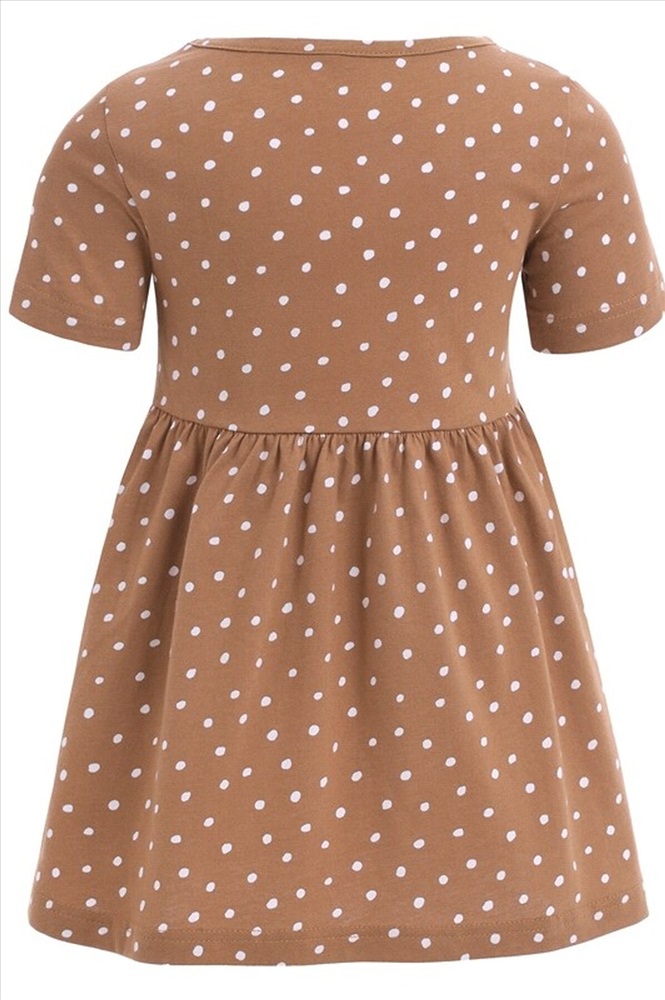 Платье для девочки выполнено из кулира - легкого хлопкового полотна. Изделие с короткими рукавами, юбочка присборена по линии талии. Отличный выбор для теплого летнего дня! Уход: только машинная стирка (руками не стирать!) при температуре 40 градусов, без предварительного замачивания. Тип полотна - кулир