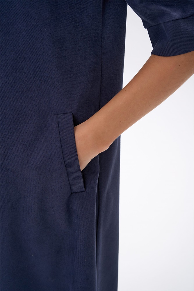 Состав: Микровельвет- (п/э-60, вискоза-35, эластан-5,) Описание Современное платье для любительниц строгих,но ярких образов. Платье A-силуэта, выполненно из микровельвета. Рукав 3/4 с манжетом. Ворот стойка, функциональные карманы. Материал: микровельвет Длина: миди Вид застежки: без застёжки Силуэт: свободный Карманы: есть Подкладка: отсутствует Длина: 46р-97см, 48р-98см, 50р-99см, 52р-100см Размер изделия на модели: 44 Рост модели: 172 см Параметры модели: 88-63-96