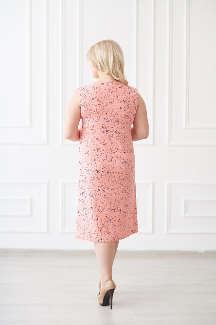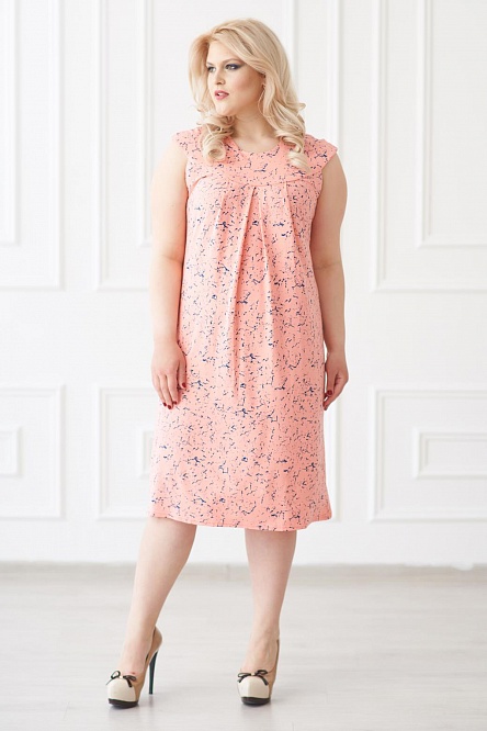 Женское платье из качественного вискозного полотна. Изделие с расширенным размерным рядом, свободного силуэта. В качестве декора выступают складки в зоне декольте.
