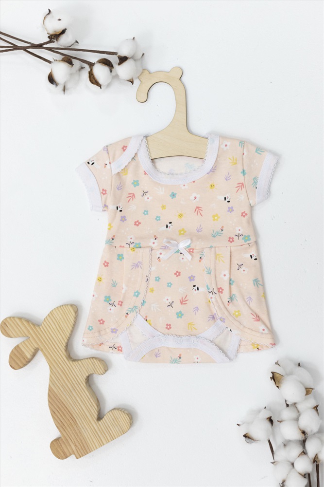Цвет Номенклатуры: розовый Платье-боди для самых маленьких, выполнено из 100% хлопковой ткани различных расцветок. Изделие с коротким рукавом, нижняя часть платья-боди на кнопках.