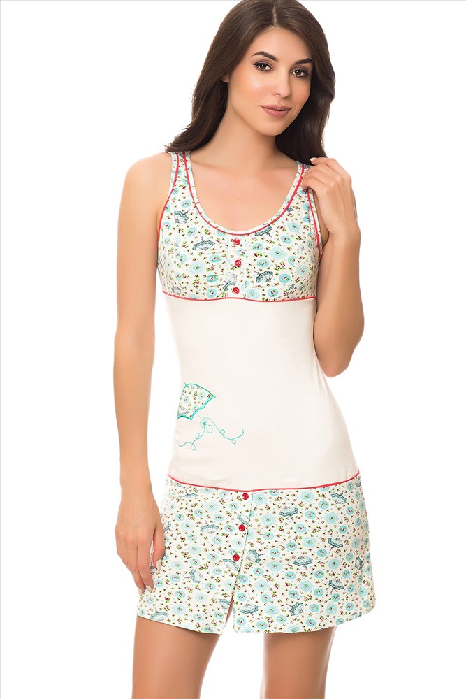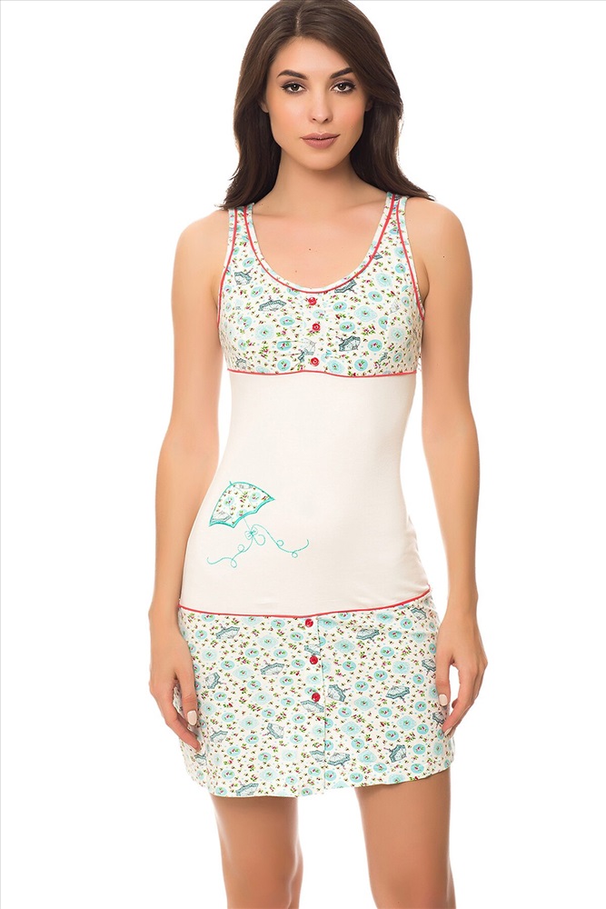 ID товара: 64262 Состав: Хлопок 92%, Эластан 8% Сезон: Весна/Лето Длина: Короткая, 83 см. по спинке Фасон: Приталенный Рукав: Без рукава Вид застежки: Нет Страна бренда: Турция Страна производства: Турция Короткое платье приталенного кроя на лямках, с круглым вырезом горловины, декорированным пуговицами. Комментарии к товару
