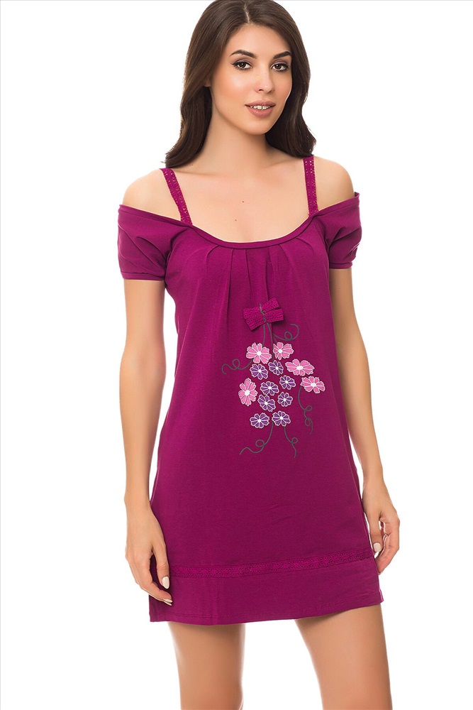 Короткое платье приталенного кроя с миниатюрным рукавчиком и тонкими бретелями.