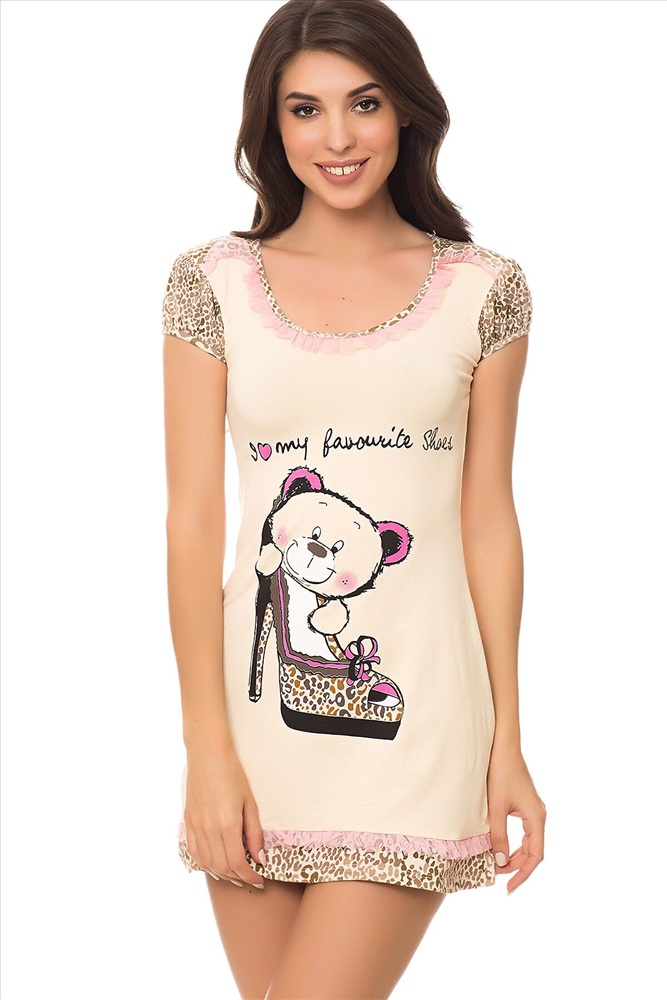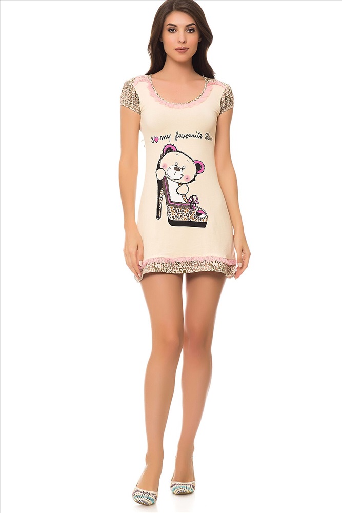 Короткое платье приталенного кроя с миниатюрным рукавчиком и круглым вырезом горловины.