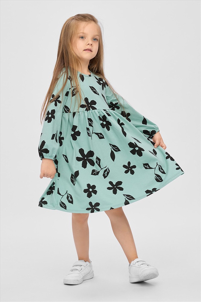 Платье Bossa Nova выполнено из супрема. Детали: застёжка на кнопку на спине, завышенная талия, рукав на резинке.