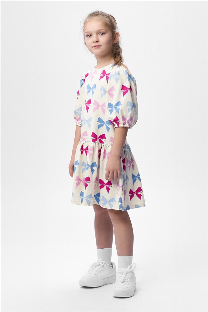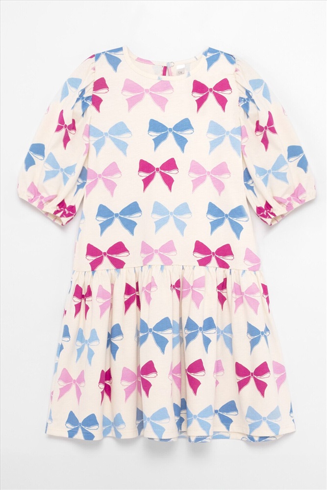 ID товара: 1086051 Состав: Хлопок 100% Сезон: Весна/Лето Длина: До колена Фасон: А-силуэт Рукав: До локтя Вырез горловины: Округлый Рисунок: Бант Декоративные элементы: Принт Основная ткань: Хлопок Стиль: повседневный Страна бренда: Россия Страна производства: Россия Платье Bossa Nova выполнено из супрема. Детали: оборка по низу платья, рукава "фонарики" на резинке, застежка на кнопку на спине. Комментарии к товару