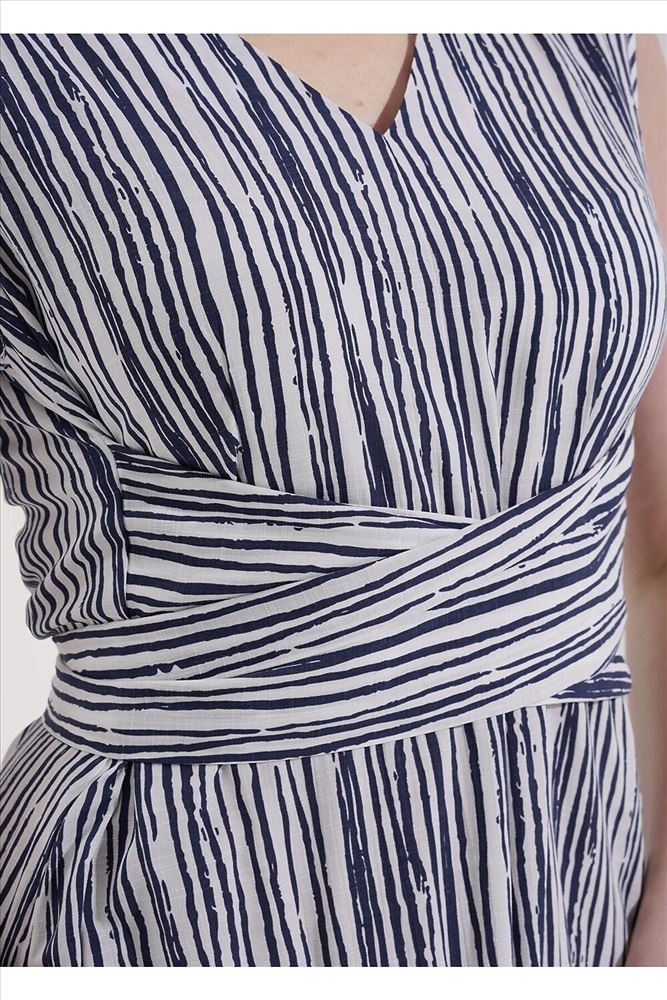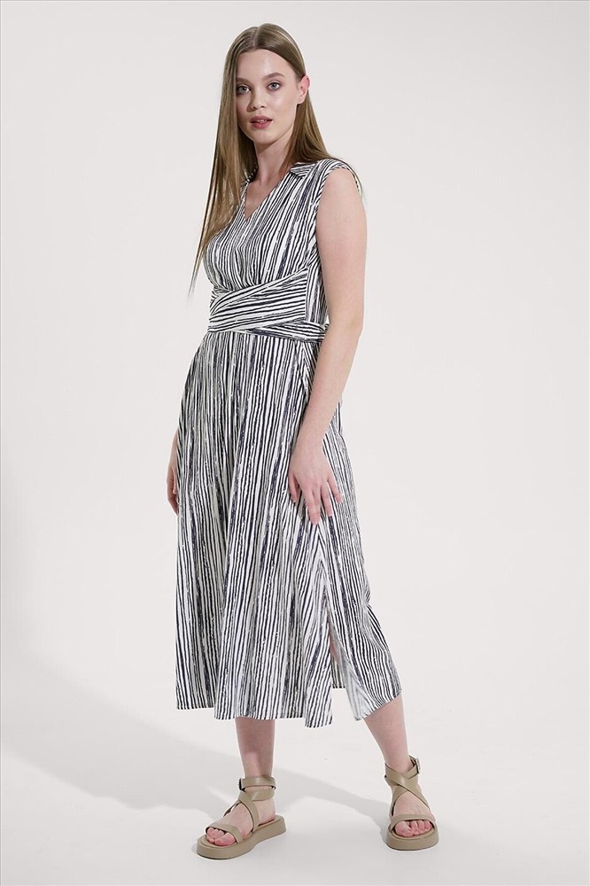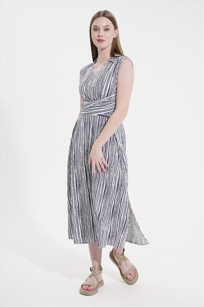 ID товара: 1116688 Состав: 58% Вискоза, 42% Полиэстер Сезон: Весна/Лето Длина: Миди Фасон: Полуприталенный Рукав: Без рукавов Вырез горловины: V-образный Основная ткань: Вискоза Стиль: Повседневный Страна бренда: Россия Страна производства: Россия Платье из текстильного полотна штапель, длиной миди, без рукавов. V-образный вырез горловины с отложным воротником и обтачками по горловине и пройме. Спереди шов, по бокам широкие обтачные завязки. Внизу изделия по бокам разрезы. Комментарии к товару