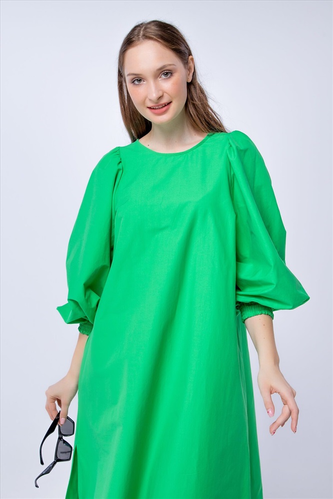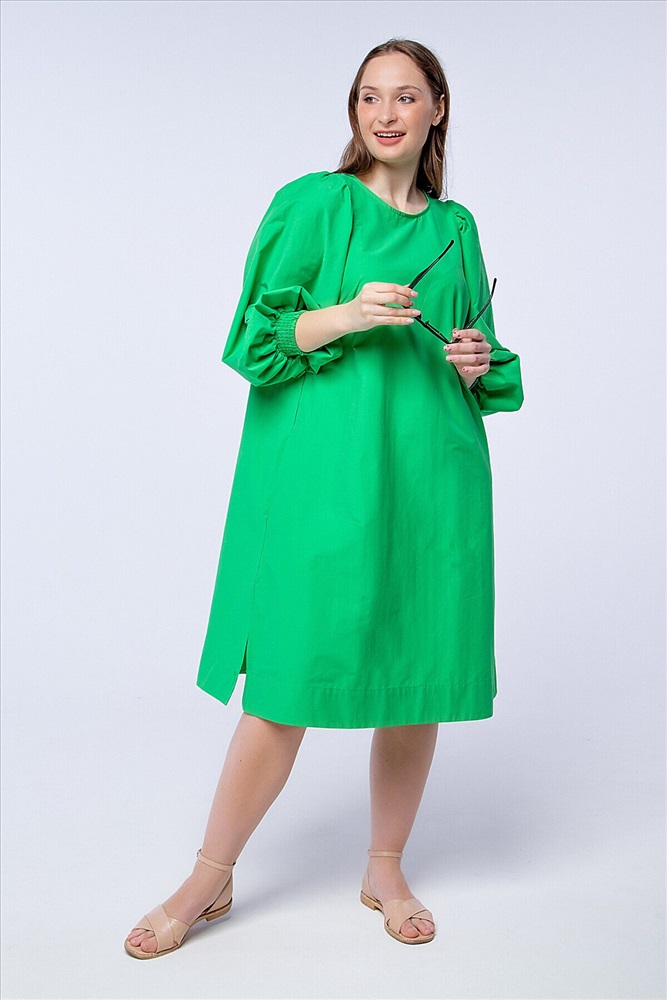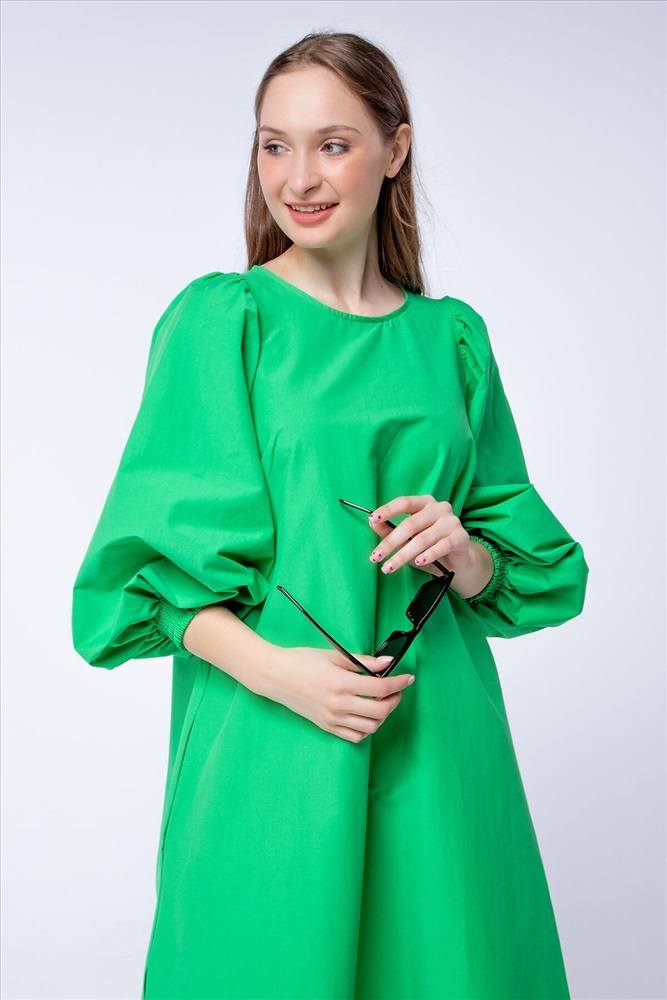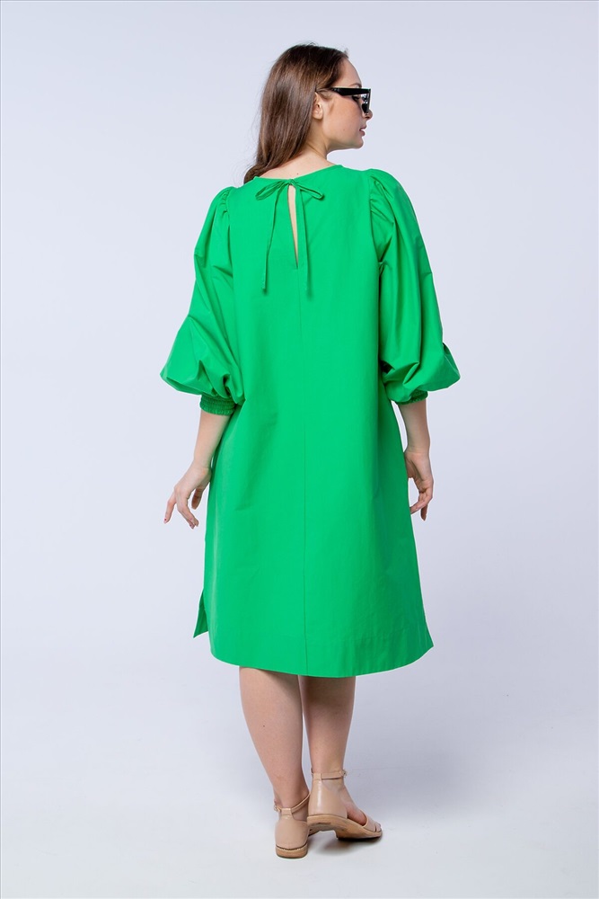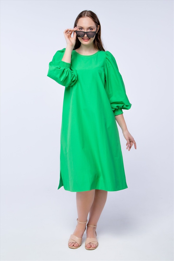 Летнее женское платье свободного силуэта отлично подойдёт обладательницам любого типа фигур. Благодаря своей лёгкости оно скроет все недостатки фигуры и подчеркнёт все достоинства. Кокетливые рукава-фонарики добавят образу воздушности, а манжеты с облегчённой резинкой не будут доставлять дискомфорт на протяжении всего дня. Хлопковая ткань из которой выполнено платье является дышащей и гигроскопичной, а это значит, что даже в самый жаркий летний день вам будет очень комфортно. Грамотно подобранная нашими дизайнерами цветовая гамма не оставит равнодушной ни одну модницу. Рекомендуем носить платье с сандалиями на плоской подошве, классическими белыми кедами и элегантными лодочками.