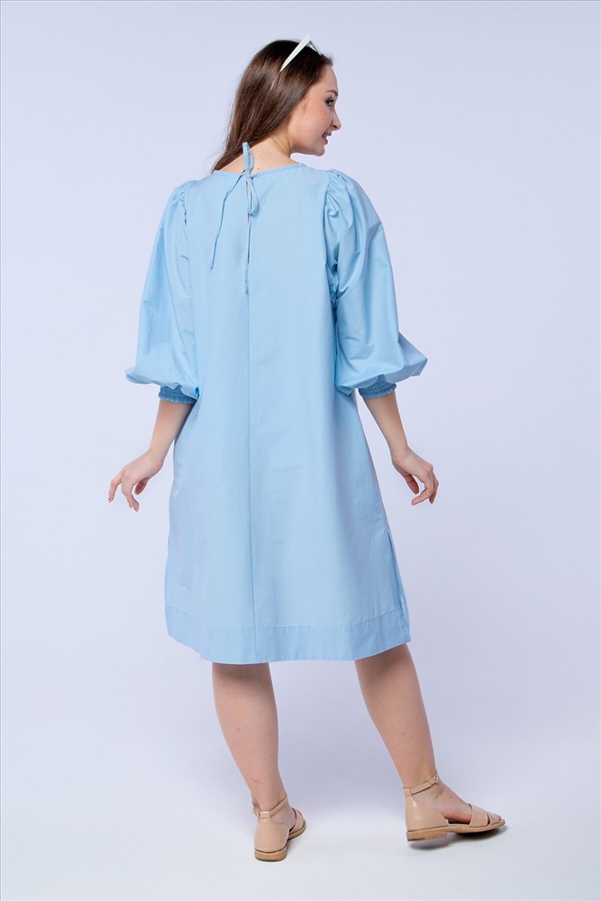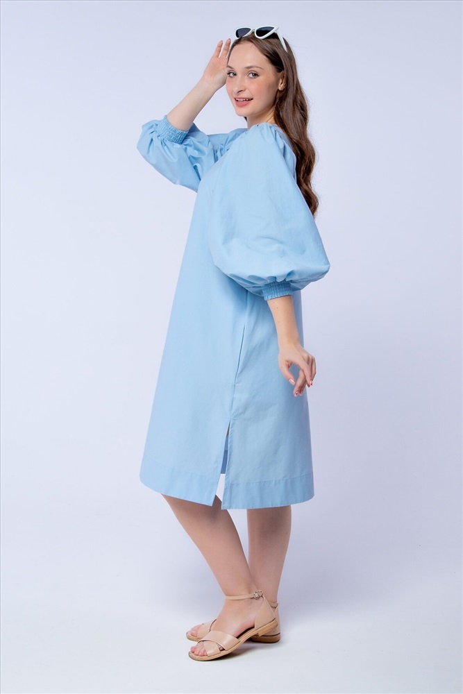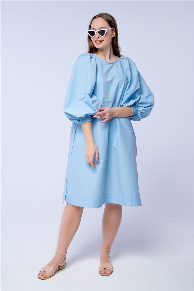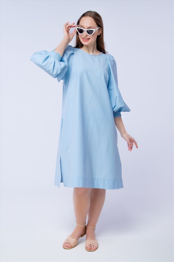 Летнее женское платье свободного силуэта отлично подойдёт обладательницам любого типа фигур. Благодаря своей лёгкости оно скроет все недостатки фигуры и подчеркнёт все достоинства. Кокетливые рукава-фонарики добавят образу воздушности, а манжеты с облегчённой резинкой не будут доставлять дискомфорт на протяжении всего дня. Хлопковая ткань из которой выполнено платье является дышащей и гигроскопичной, а это значит, что даже в самый жаркий летний день вам будет очень комфортно. Грамотно подобранная нашими дизайнерами цветовая гамма не оставит равнодушной ни одну модницу. Рекомендуем носить платье с сандалиями на плоской подошве, классическими белыми кедами и элегантными лодочками.