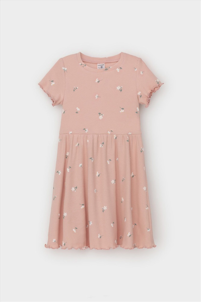 Летнее платье для девочки из эластичного трикотажа в рубчик. Оригинальная набивка выполнена из стойких текстильных гипоаллергенных красителей.