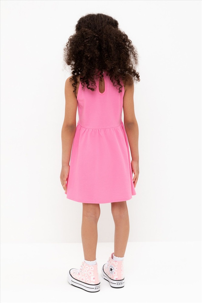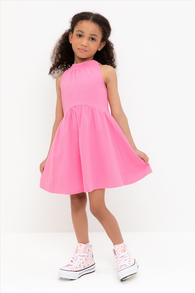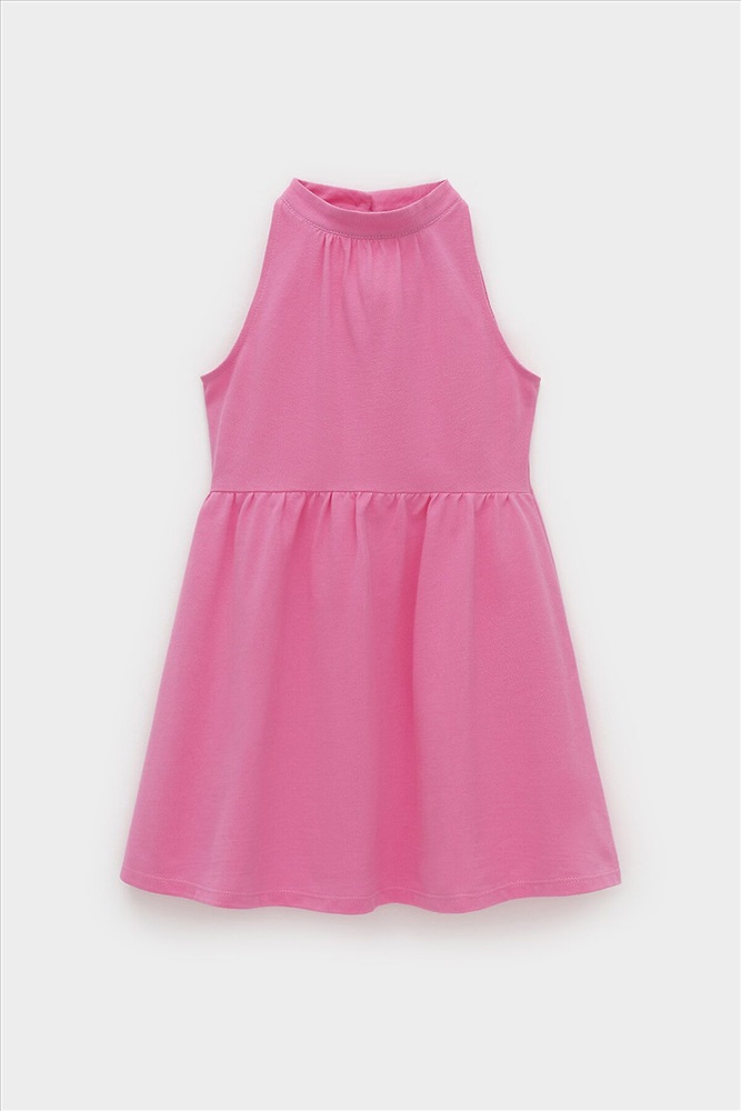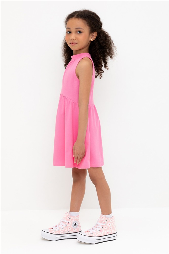 Платье для девочки из высококачественного трикотажа пике с воротничком-стойкой. Для удобства одевания платье застёгивается на пуговицу на спинке. Платье сохраняет форму и стойкий цвет после многочисленных стирок и идеально подходит на каждый день.