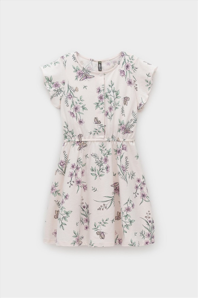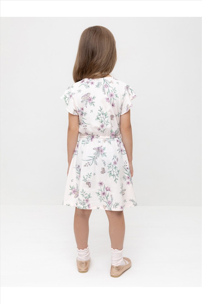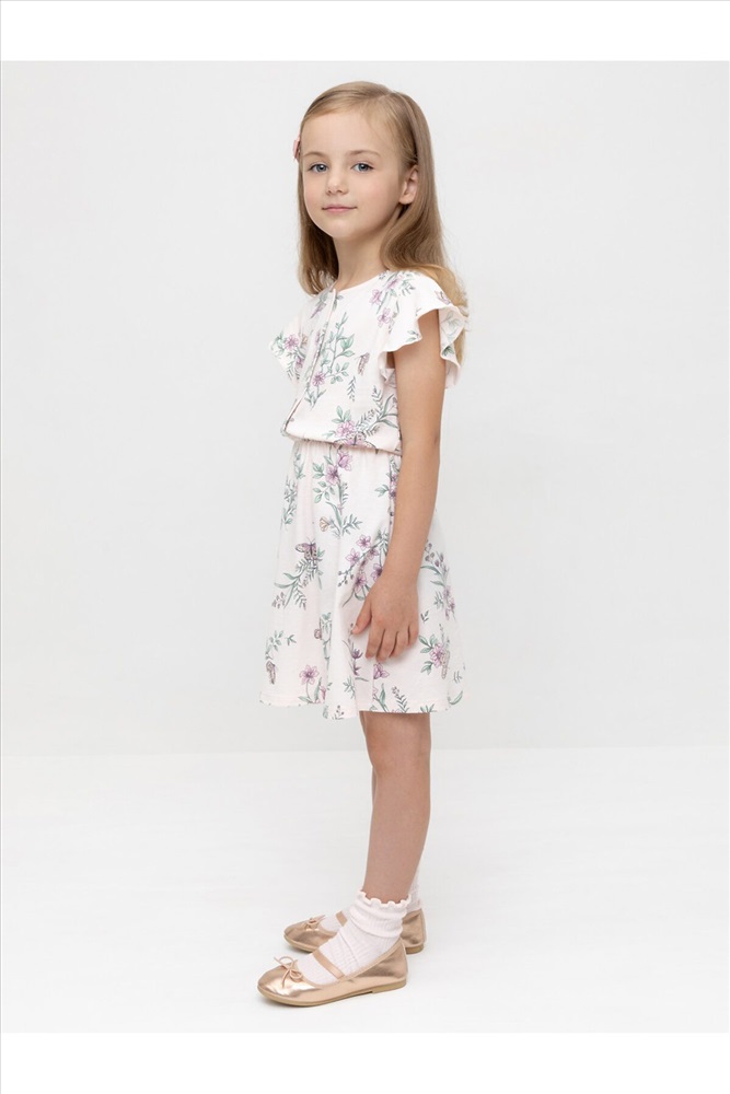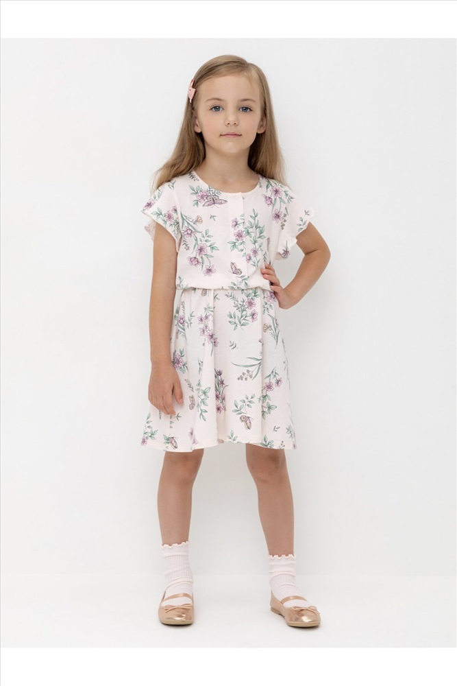 Платье для девочки из высококачественного трикотажа супрем. Верх украшен изящными крылышками. Для удобства одевания платье застёгивается на кнопки спереди. Платье сохраняет форму и стойкий цвет после многочисленных стирок и идеально подходит на каждый день.