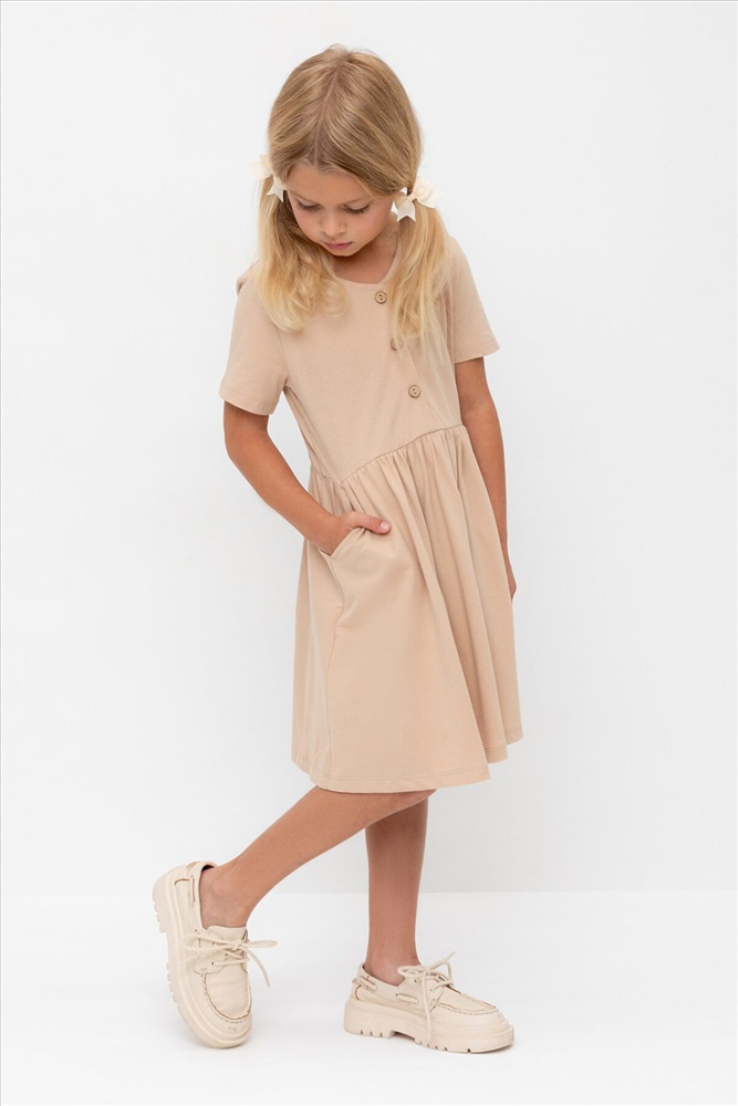 ID товара: 1121175 Состав: 100% Хлопок Сезон: Весна/Лето Длина: До колена Фасон: Расклешенное Рукав: Короткий Вид застежки: Пуговицы Вырез горловины: Круглый Рисунок: нет Тип карманов: Втачные Основная ткань: Хлопок Стиль: Повседневный Страна бренда: Россия Страна производства: Россия Лёгкое платье с короткими рукавами для девочки. Изготовлено из высококачественного трикотажа супрем. Платье сохраняет форму и стойкий цвет после многочисленных стирок и идеально подходит на каждый день. Комментарии к товару