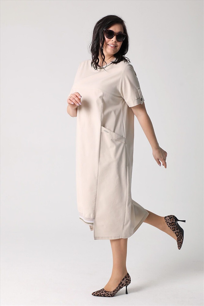 Страна производства: Россия Летнее платье-миди свободного силуэта, слегка зауженного книзу.