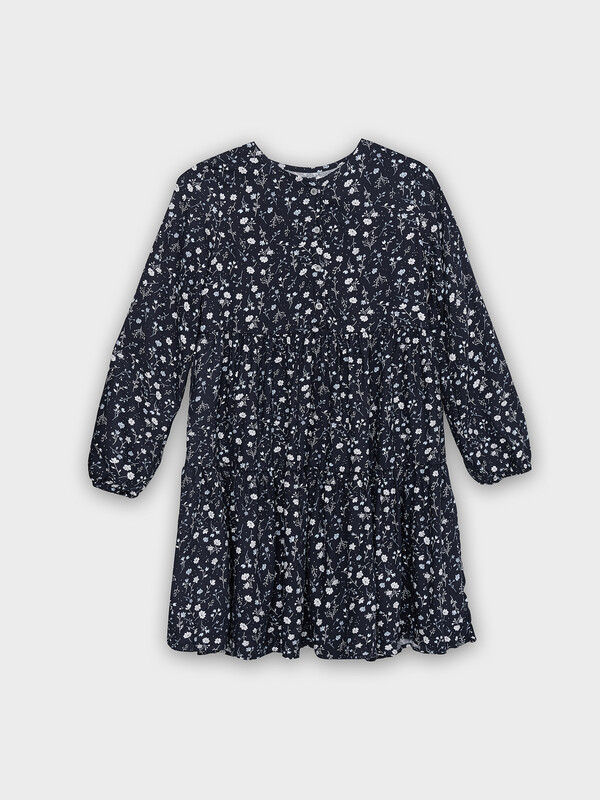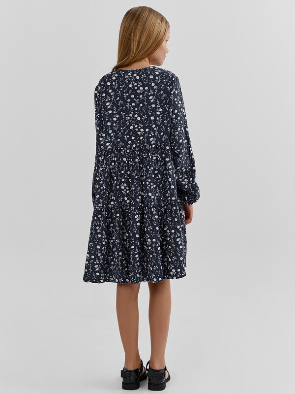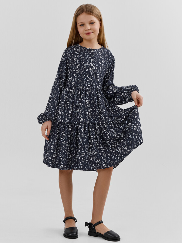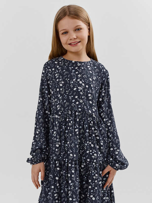 Красивое детское платье для девочек в классическом А-силуэте с отрезными воланами. Эта модель из 100% вискозы сочетает в себе изящество и шарм, создавая идеальную гармонию стиля. По переду платья расположена застежка-планка, состоящая из четырех элегантных пуговиц. Горловина платья выполнена в форме круглого выреза. Длинные втачные рукава придают платью элегантность и изысканность. Такое платье станет идеальным выбором на каждый день и для праздников. Оно подчеркнет индивидуальность вашей девочки, а его оригинальный дизайн не оставит равнодушными окружающих. Рекомендуем!
