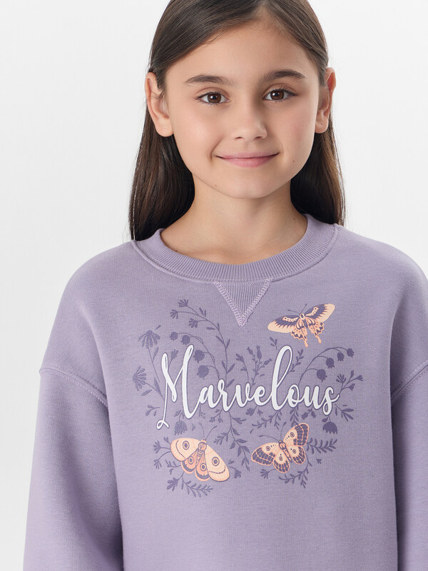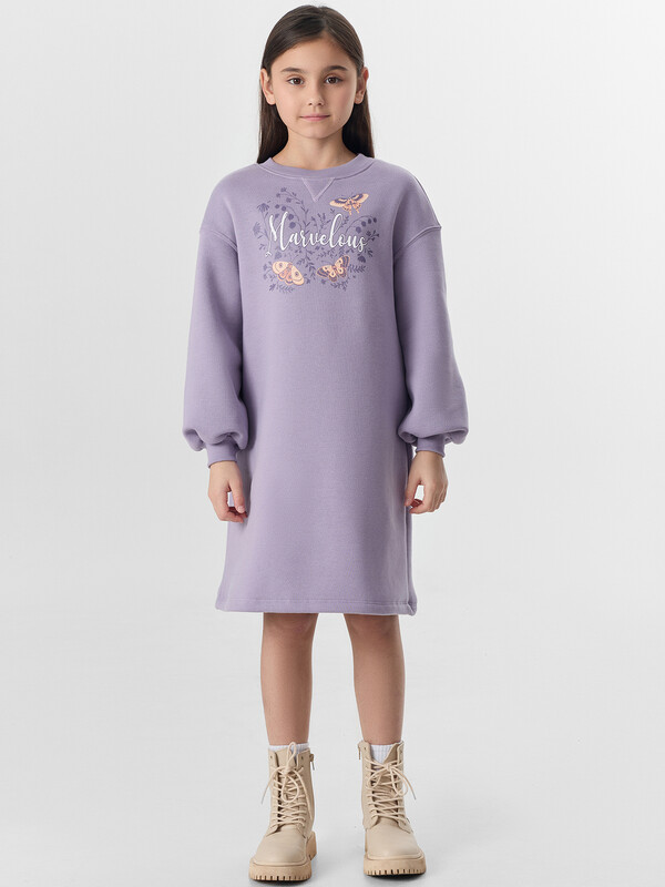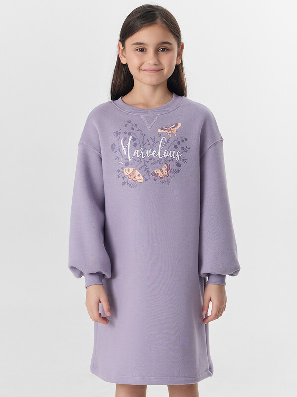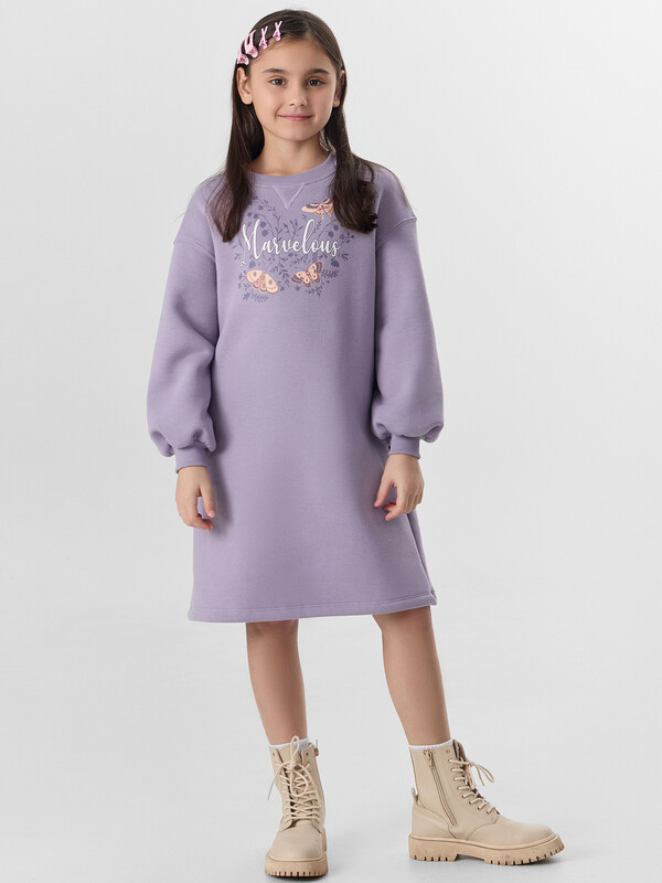 Платье-свитшот с надписью «Чудесно» — прекрасный выбор для юных модниц, которые ценят уют и яркие акценты. Свободный крой и мягкий начес внутри создают ощущение комфорта, идеально подходя для осенних прогулок.