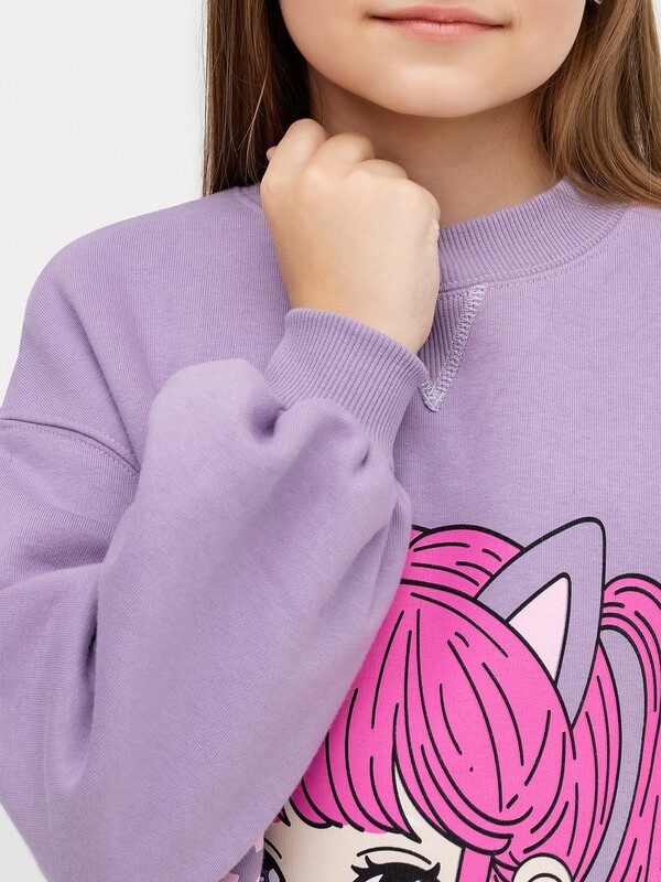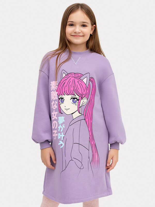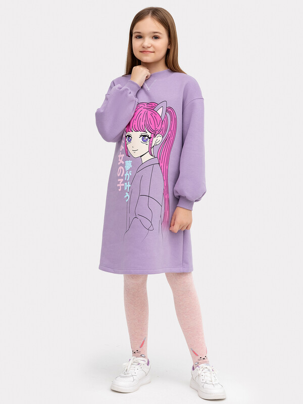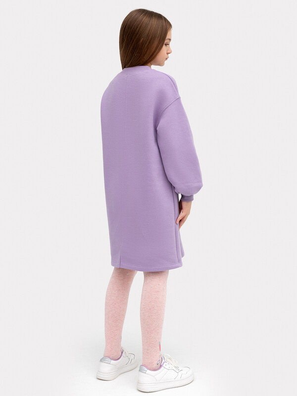 Платье свободного силуэта. Горловина круглой формы обработана обтачкой из рибаны. Шов притачивания рибаны распошит. Рукава длинные, втачные, внизу на сборке. Линия плеча спущена. По низу рукавов притачные манжеты из рибаны. Центральный шов по спинке с разрезом снизу. Низ изделия обработан на 2-х игольной плоскошовной машине швом в подгибку. Длина платья выше колена.