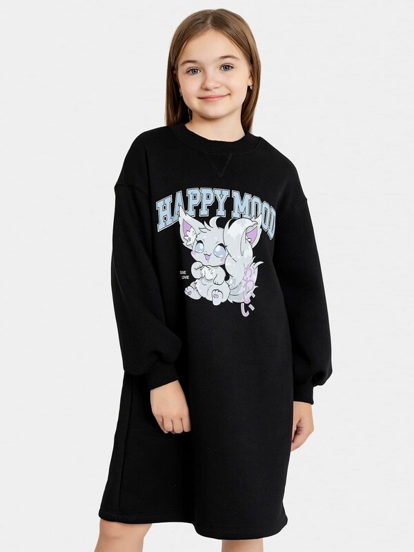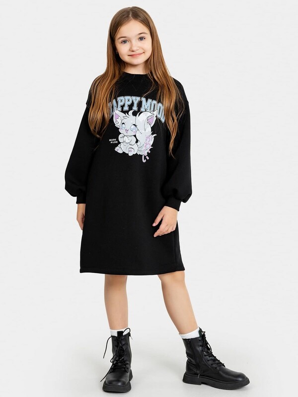 67% хлопок; 33% полиэстер Вид застежки: без застежки Вырез горловины: круглый Декоративные элементы: без элементов Конструктивные элементы: нет Назначение: повседневная Покрой: свободный Пол: Девочки Предмет: Платья Тип карманов: без карманов Тип рукава: длинные Уход за вещами: деликатная стирка при 30 градусах длина изделия по спинке, см.: 85,4 фактура материала: футер с подчесом Комментарии к товару