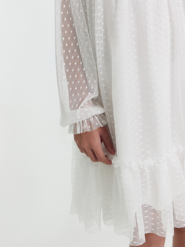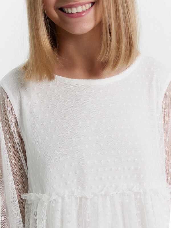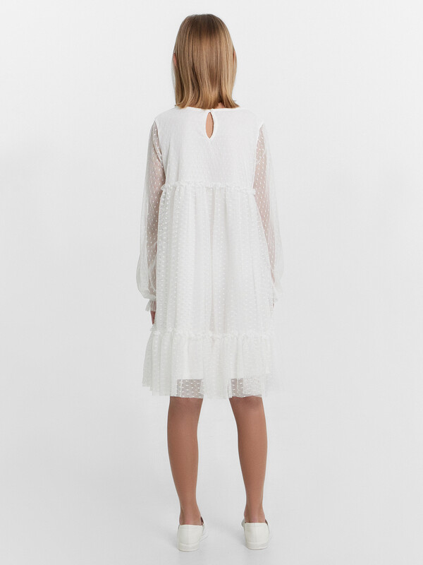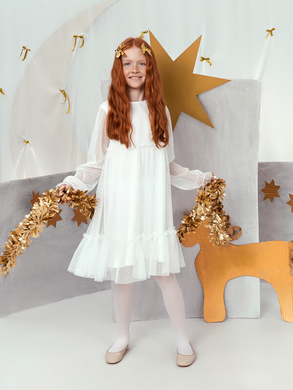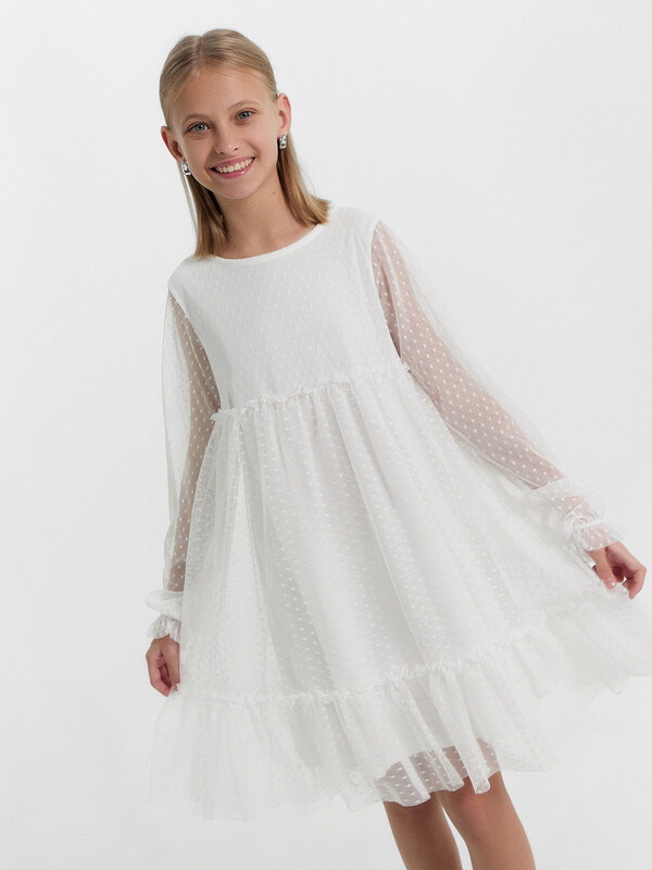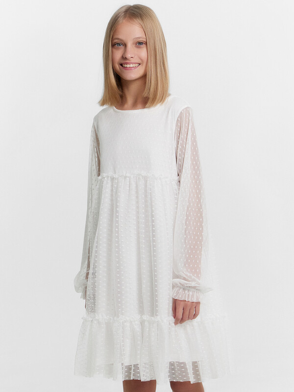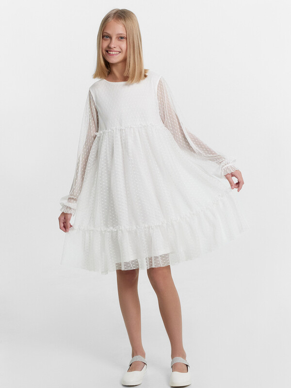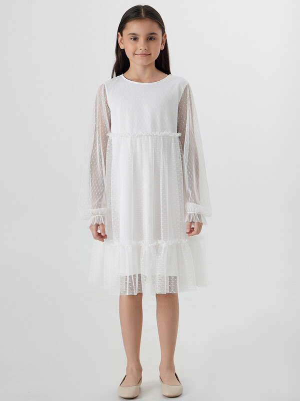 Производитель: Mark Formelle Нарядное платье для девочки из нежной сеточки – идеальный выбор для праздничных мероприятий, утренников и других торжественных случаев. Круглый вырез горловины и длинные рукава придают модели элегантность и утонченность. На спинке находится застежка-пуговица, что добавляет изысканный акцент. Подкладка платья выполнена из нежной хлопковой кулирки, которая обеспечивает комфорт и мягкость на протяжении всего дня. Кулирка – это материал, который дышит, позволяет коже ощущать приятную прохладу и предотвращает раздражение, что особенно важно для детской кожи. Это платье не только красиво, но и функционально, оно подарит вашей малышке ощущение праздника и комфорта. Рекомендуем для создания волшебного и нарядного образа!