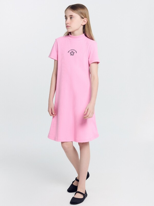 Платье полуприлегающего силуэта. Рукав втачной короткий. Горловина круглая с воротником
