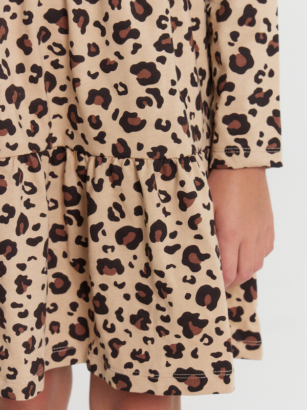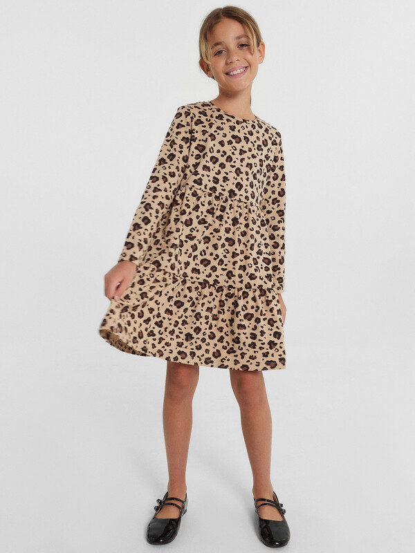 Это прелестное платье с отрезными воланами станет прекрасным дополнением к гардеробу вашей девочки. Выполненное из высококачественного 100% хлопка, оно обеспечивает исключительный комфорт и свободу движений, позволяя коже ребенка дышать. Изящный, полуприлегающий силуэт платья создаст женственный и элегантный образ. Длинные рукава и круглый вырез горловины гарантируют свободу движений. Оригинальный принт придает модели особенный шарм и индивидуальность. Благодаря продуманному крою и качественному пошиву, платье идеально садится по фигуре, обеспечивая комфорт и свободу на протяжении всего дня. Оно одинаково уместно как для повседневных прогулок, так и для праздничных мероприятий. Сочетайте его с колготками, кардиганами и туфельками для создания стильных образов!