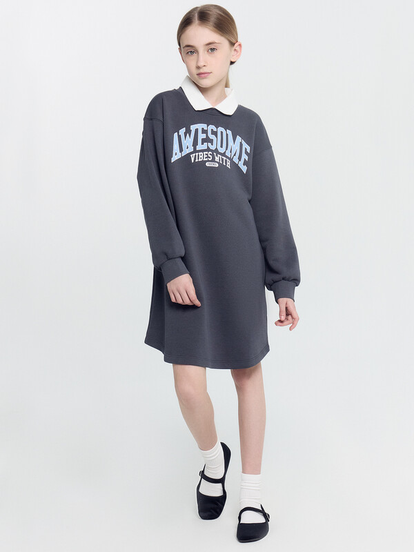 плоскошовной машине швом в подгибку. Длина платья выше колена. 87% хлопок; 13% полиэстер Комментарии к товару