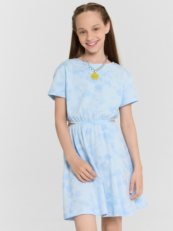 Это очаровательное платье для девочек — удобный и стильный вариант, который прекрасно подходит для повседневной носки. Полуприлегающий силуэт создает гармоничный образ, обеспечивая комфорт и свободу движений. Круглая горловина добавляет классический акцент, а короткие рукава делают модель универсальной для любого сезона. Эластичная тесьма внутри пояса создаёт лёгкую сборку, придавая платью изящную форму и подчеркивая силуэт. Низ изделия обработан швом вподгибку, что обеспечивает аккуратный вид и долговечность.Выполненное из хлопковой кулирки платье мягкое, воздухопроницаемое и приятное к телу, гарантируя комфорт на протяжении всего дня. Отличный вариант для повседневного гардероба маленьких ценительниц стиля!