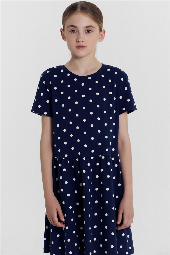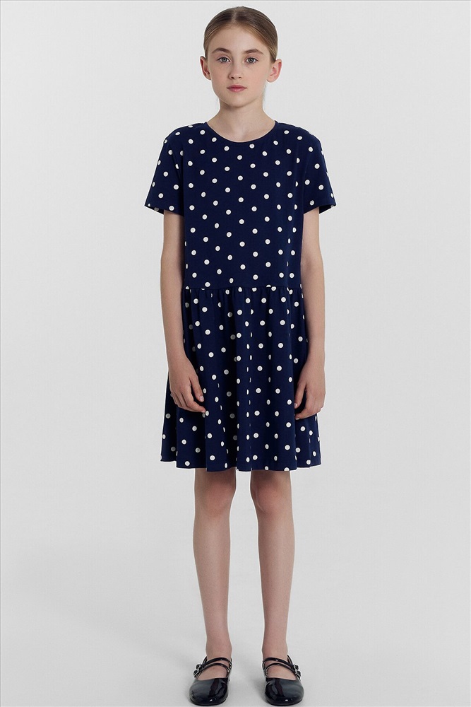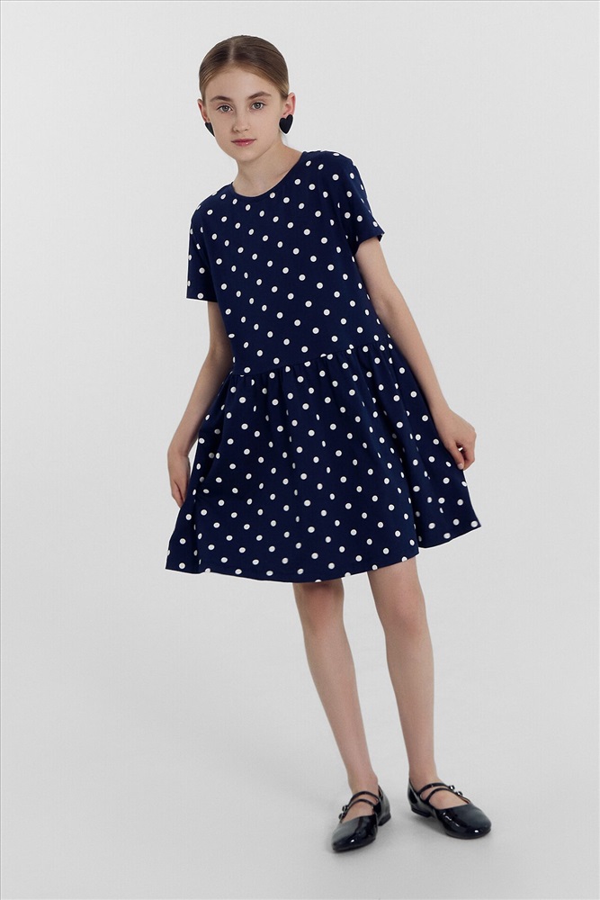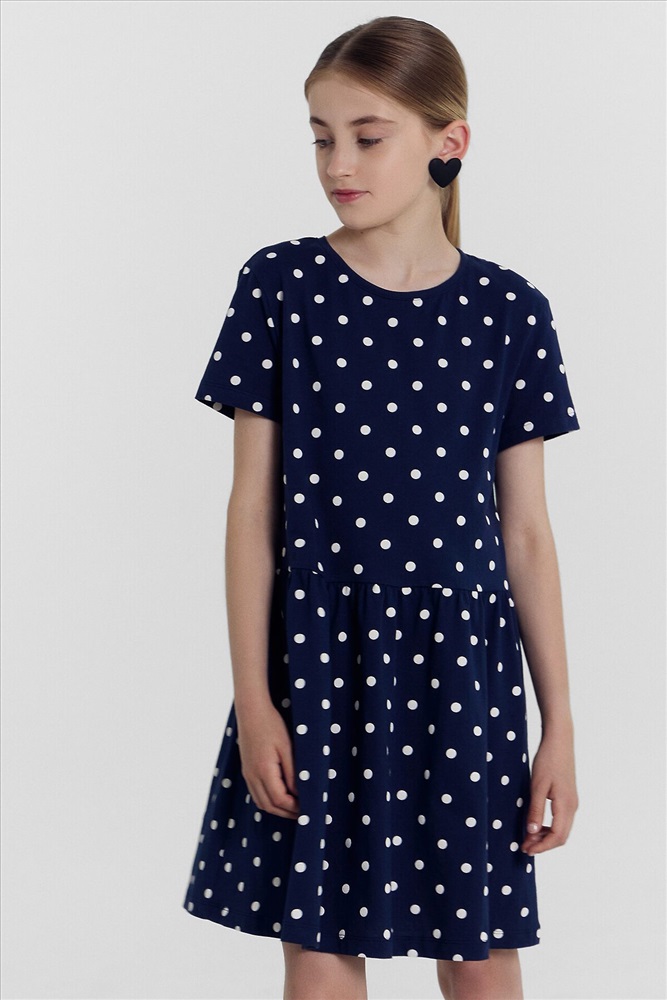 Страна бренда: Беларусь Стильное платье в сердечко, изготовленное из хлопковой трикотажной кулирки. Модель отрезная по линии талии, где проходят сборочки. Рукава короткий, с небольшими манжетами. Вырез круглый Длина платья выше колена. Отличный выбор для вашей девочки!